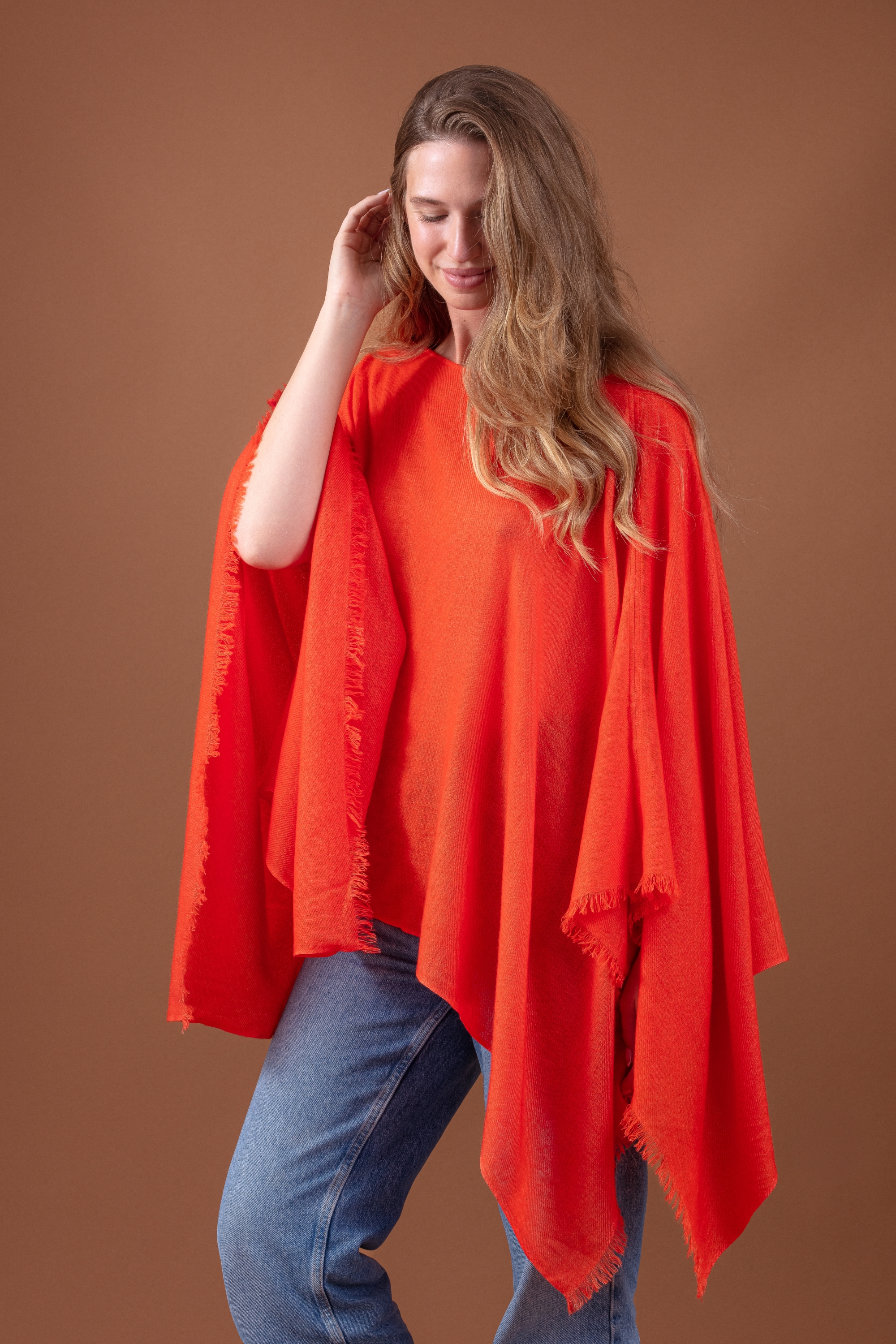 When elegance meets softness: woven poncho in 2-ply cashmere.