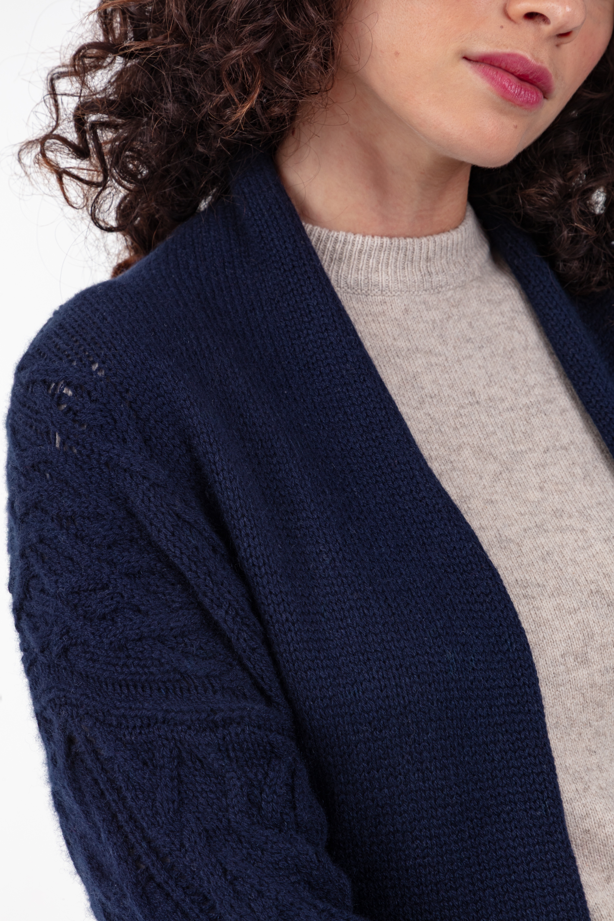 • This maxi cashmere cardigan is ideal layered over a dress or tailored trousers for a sophisticated yet comfortable style. With its ample cut and shawl collar, it becomes a winter statement piece – both elegant and cosy.