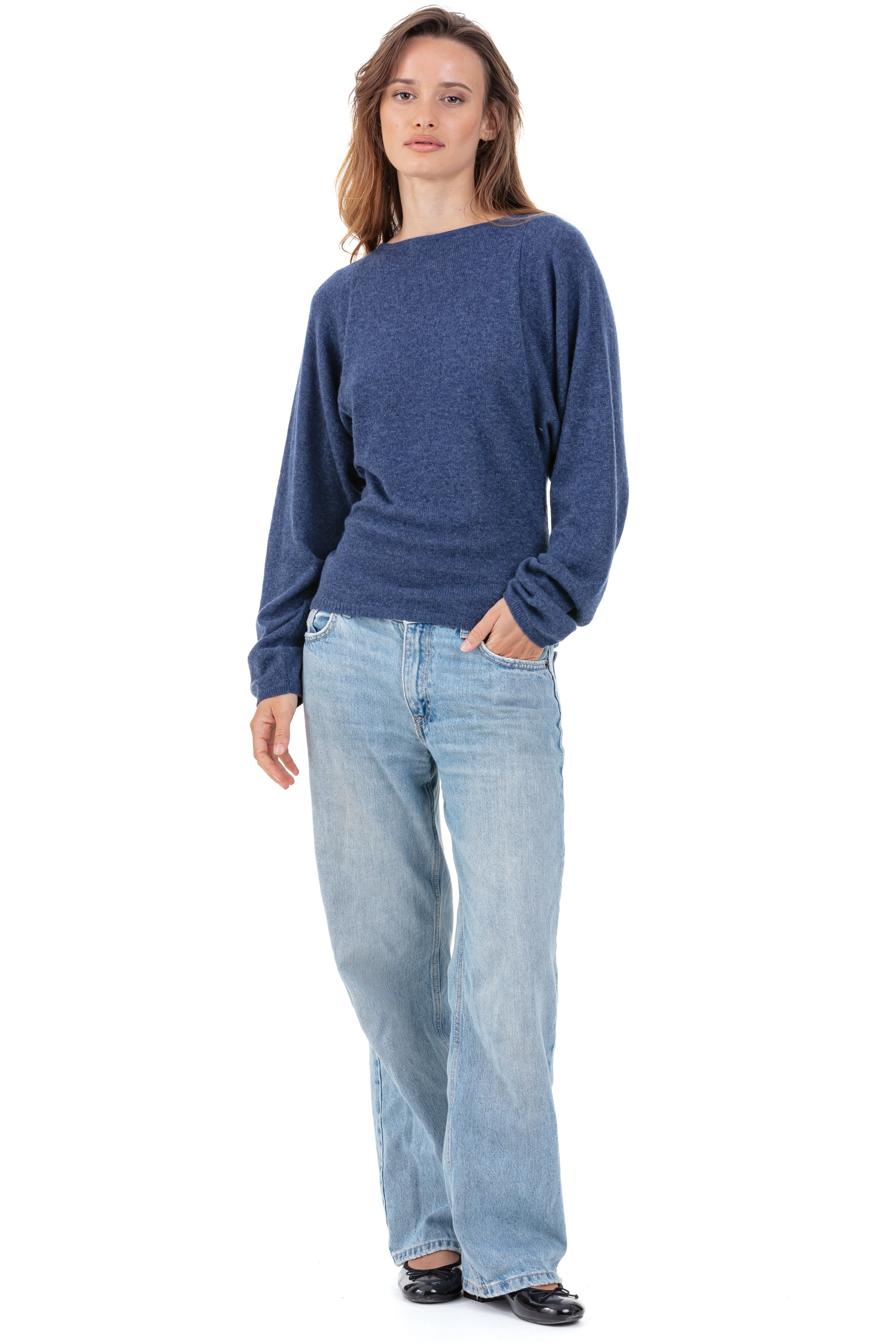 Light and modern, the PALERMO women’s cashmere jumper enchants with its fitted cut and elegant batwing sleeves. Knitted in 100% 2-ply cashmere using a loose-gauge technique, it offers an airy, fluid, and refined finish. Its soft and lightweight texture makes it a wardrobe essential – both comfortable and undeniably chic, ideal for the mid-season as well as winter.