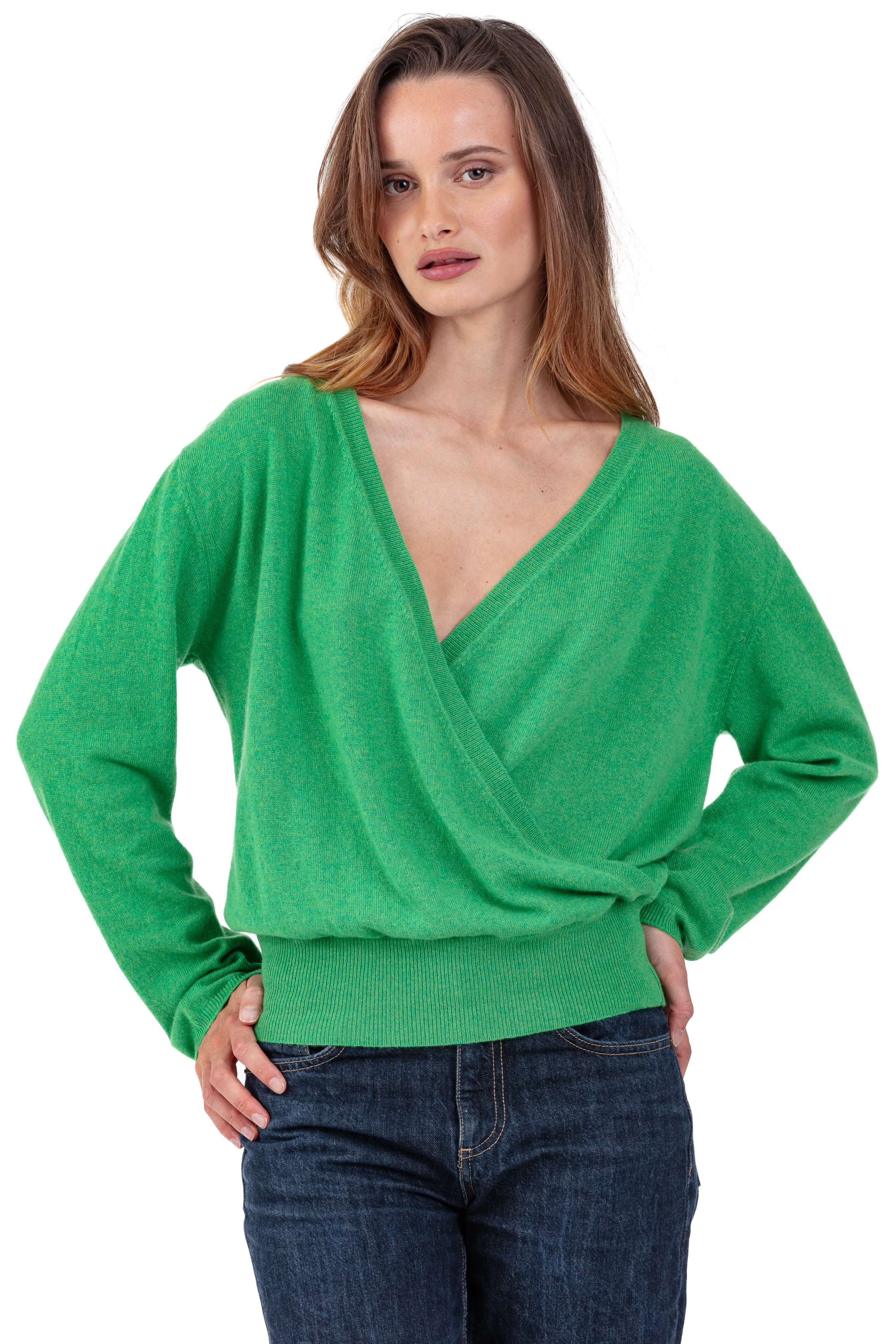 • This cashmere wrap-over jumper pairs perfectly with a high-waisted skirt or tailored trousers for a chic, feminine look. It can also be worn with jeans for a more casual style, while maintaining natural elegance.