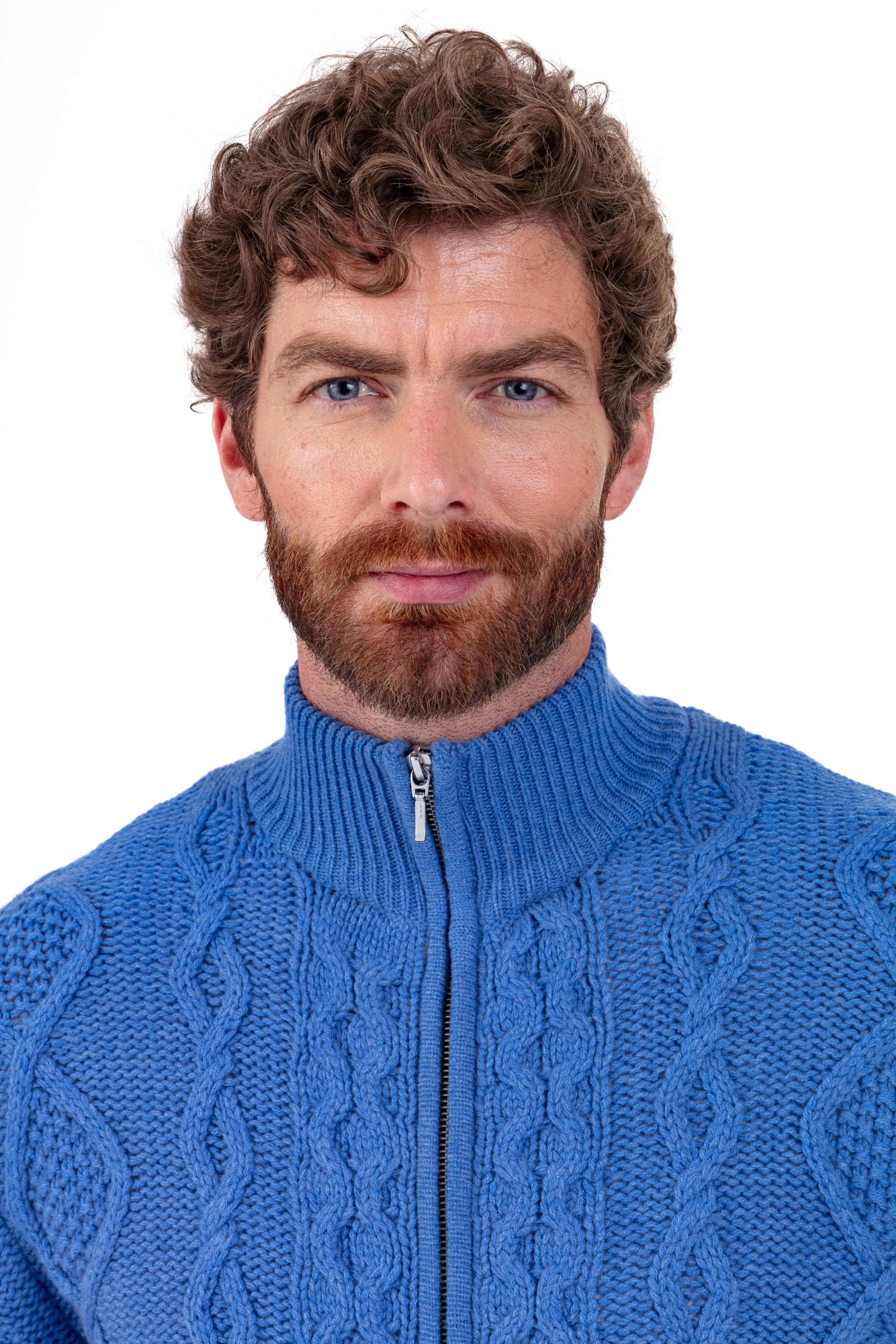 • Finishes: double zip fastening · side pockets · cable-knit long sleeves