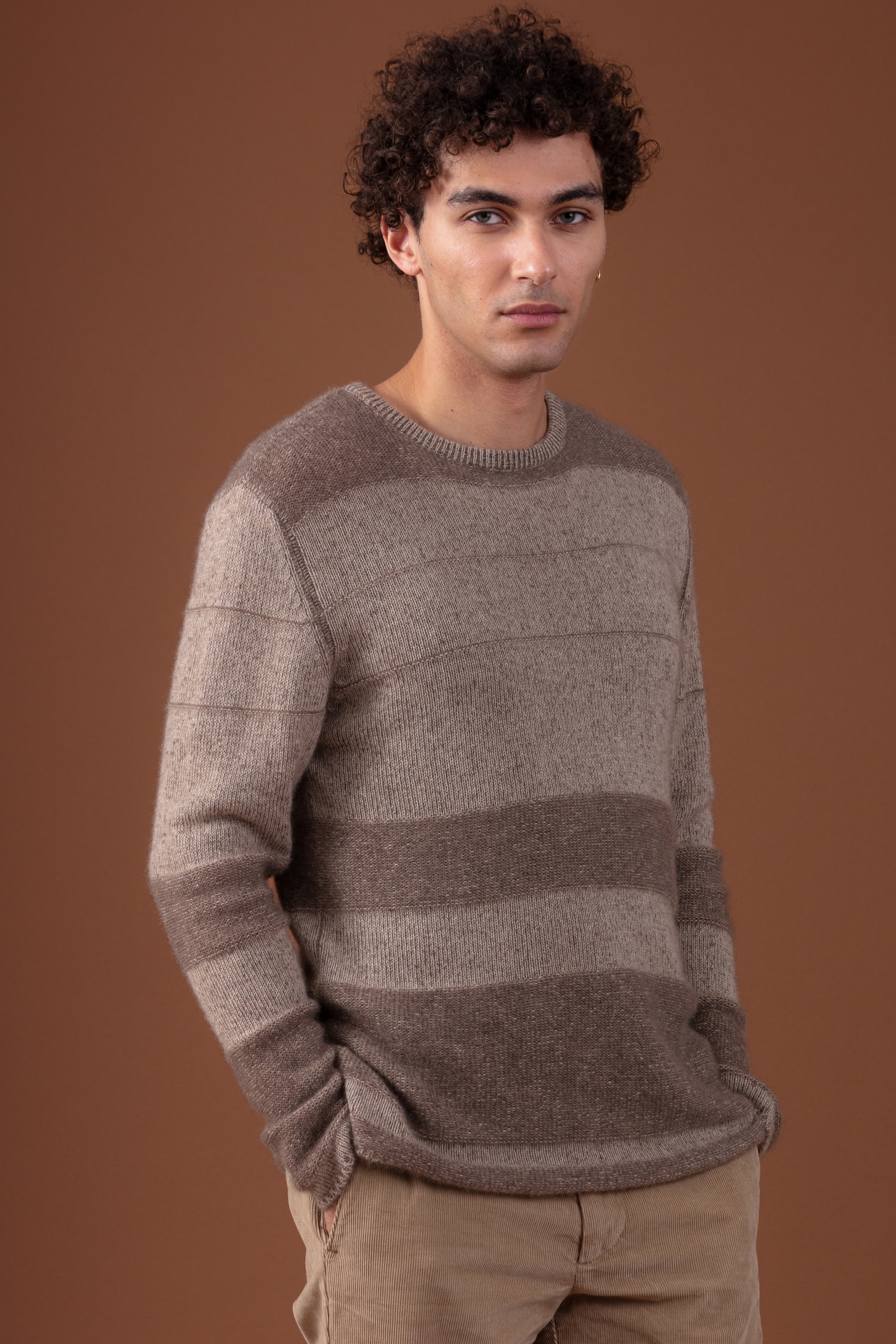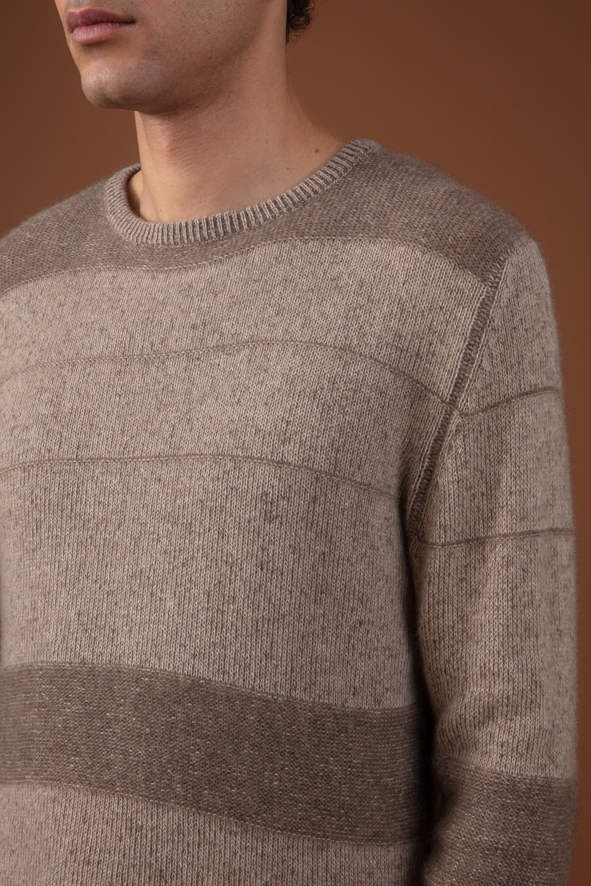The RACINE jumper features a subtly graphic texture, created by alternating knit and purl stitches in a horizontal striped pattern. Knitted in 4-ply 100% cashmere, it offers enveloping warmth and premium comfort.
