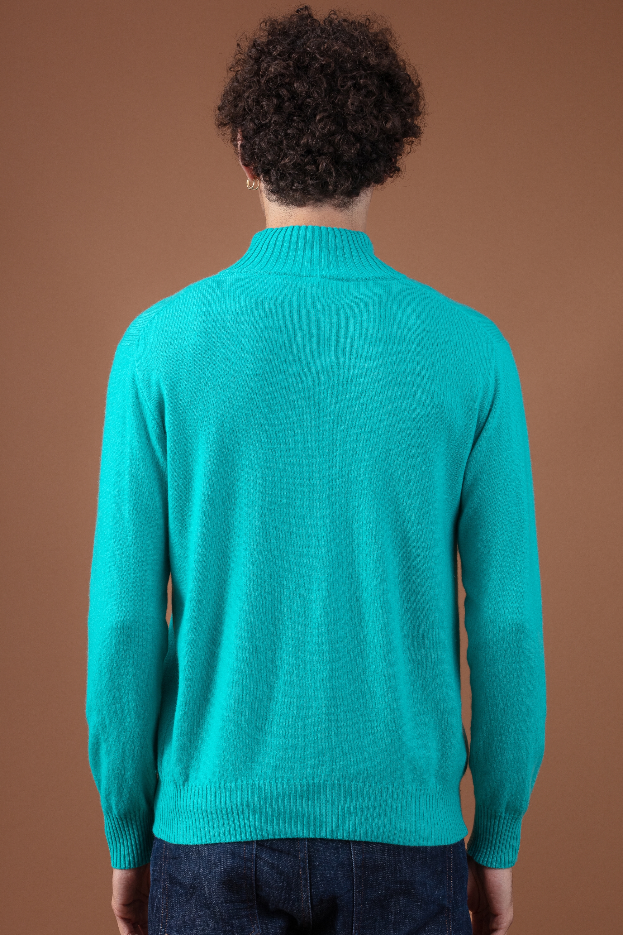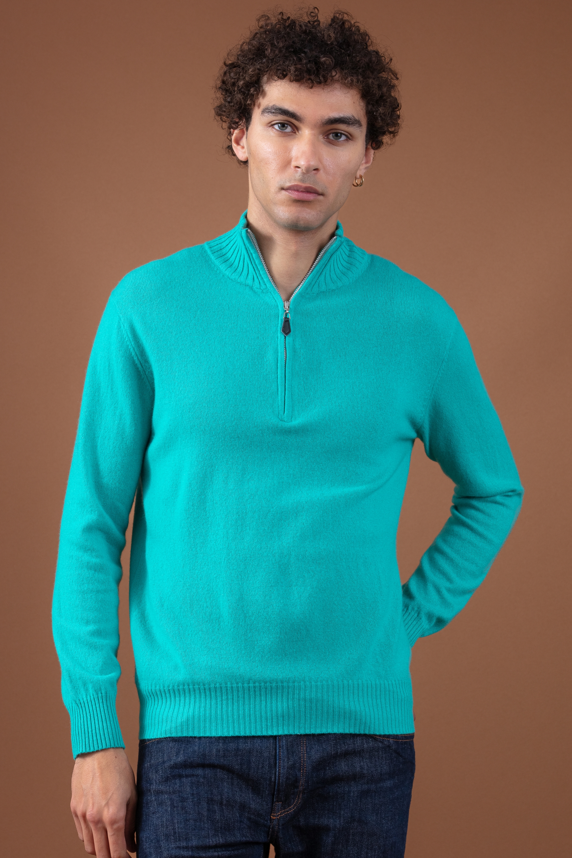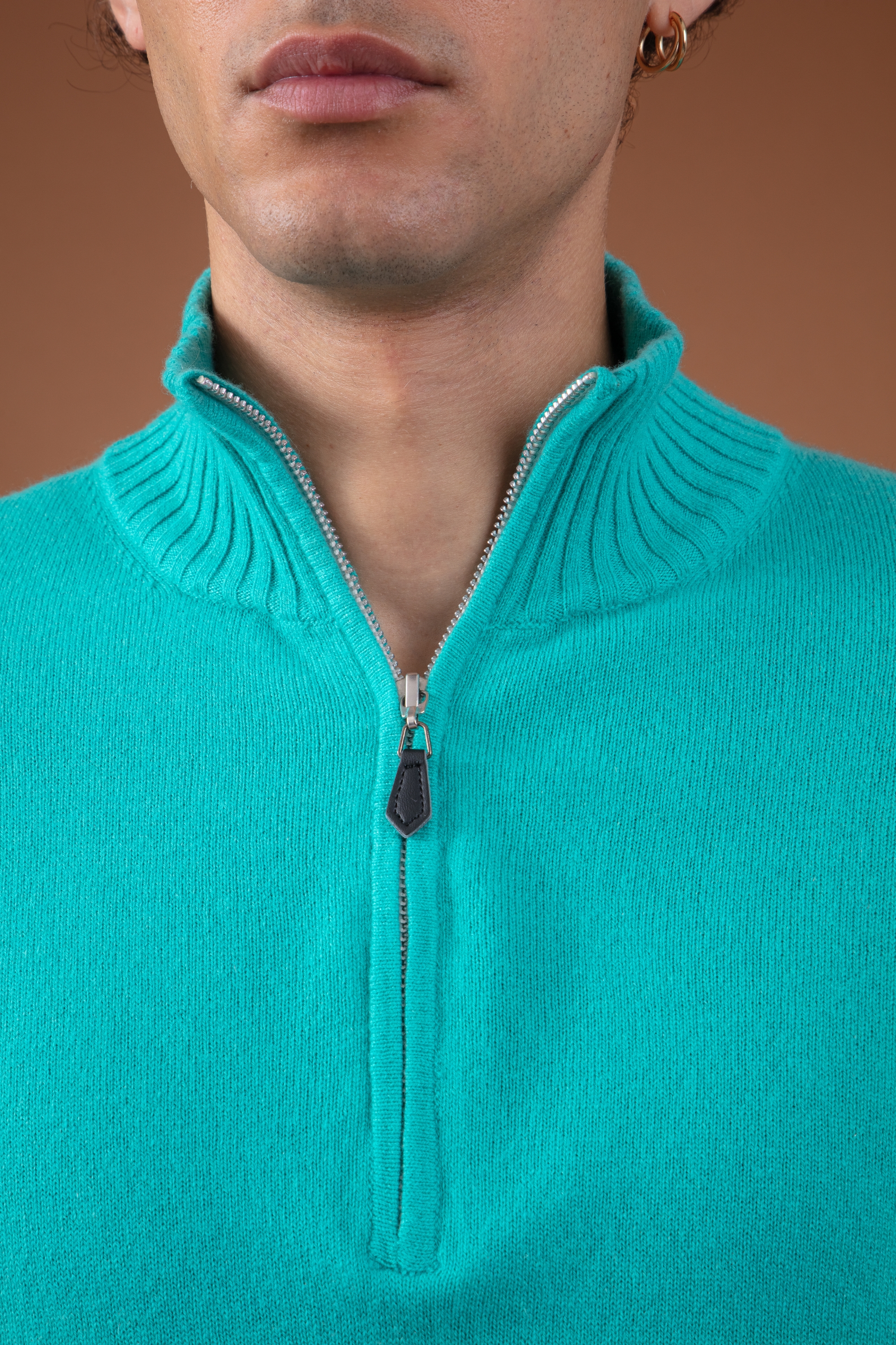 Jumper with zipped high neck and 2x2 ribs in 6cm on cuffs & bottom.