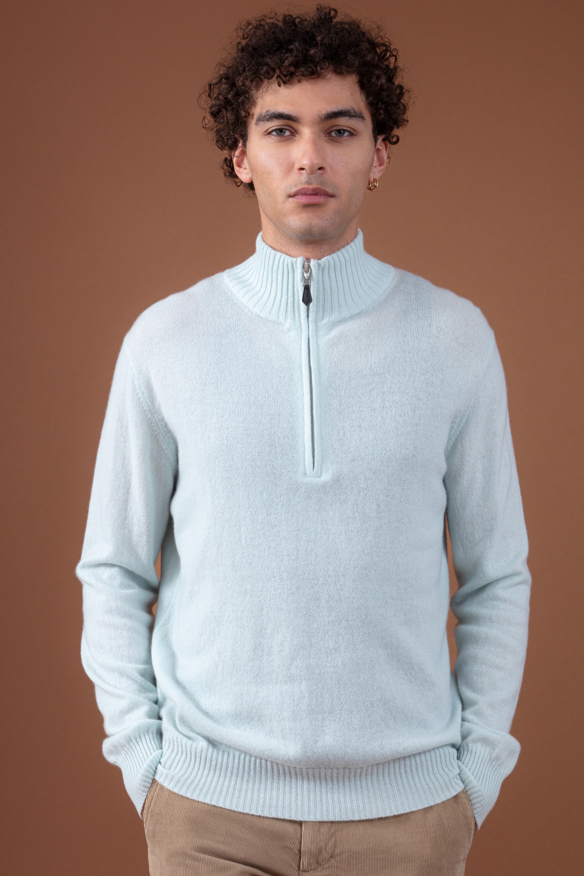 Jumper with zipped high neck and 2x2 ribs in 6cm on cuffs & bottom.