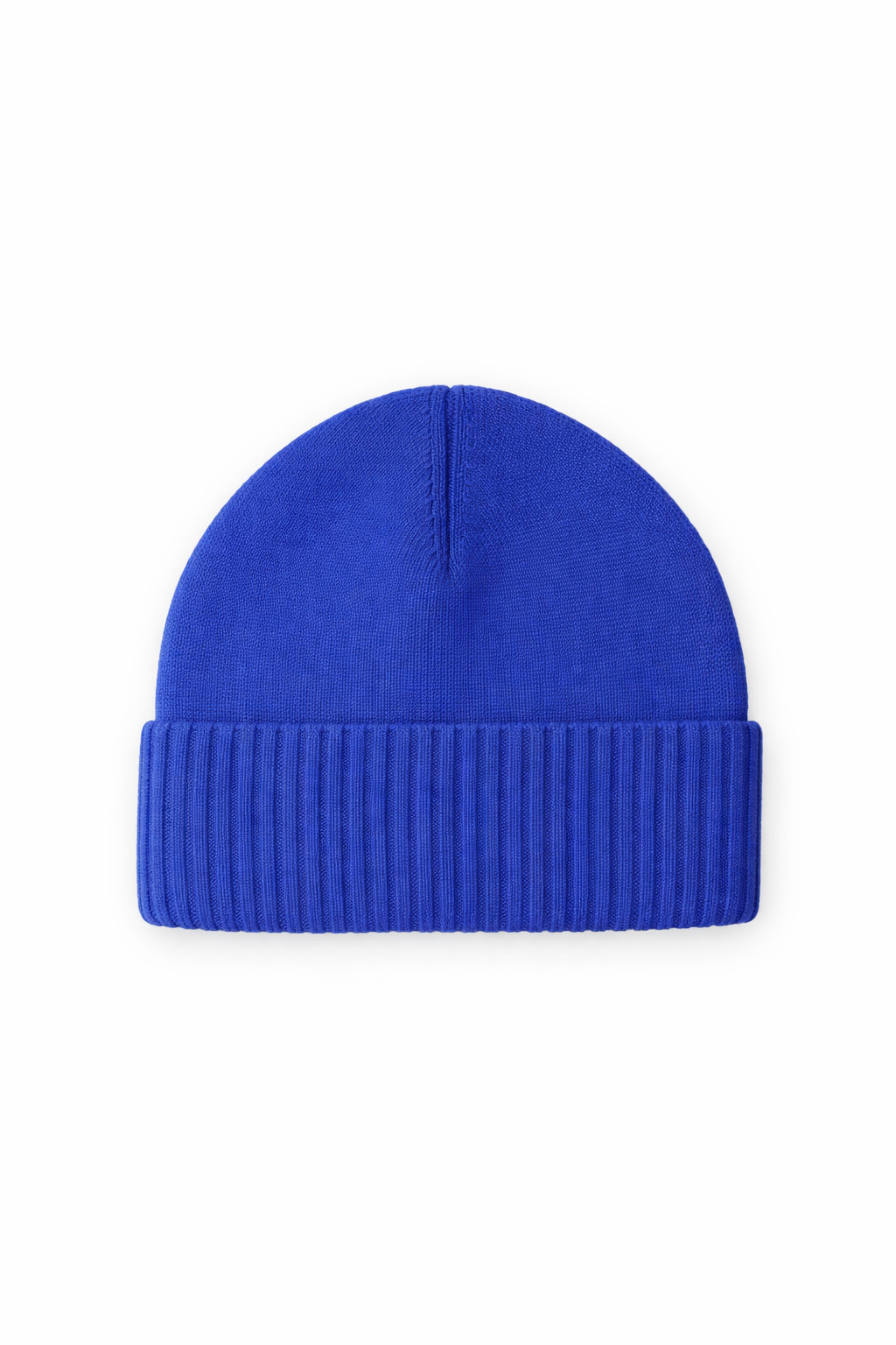 Knitted in English rib with a wide 1x1 ribbed cuff.