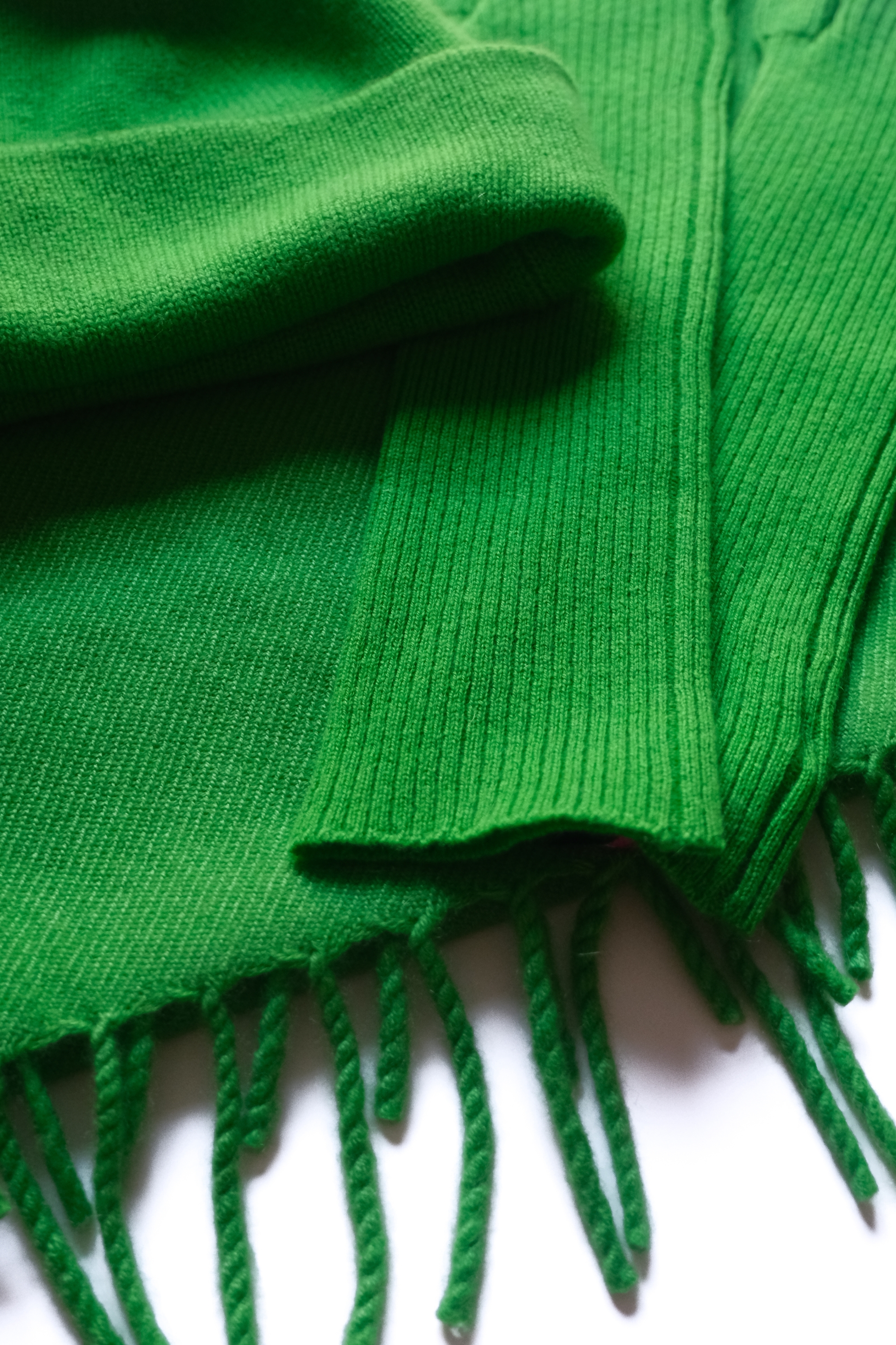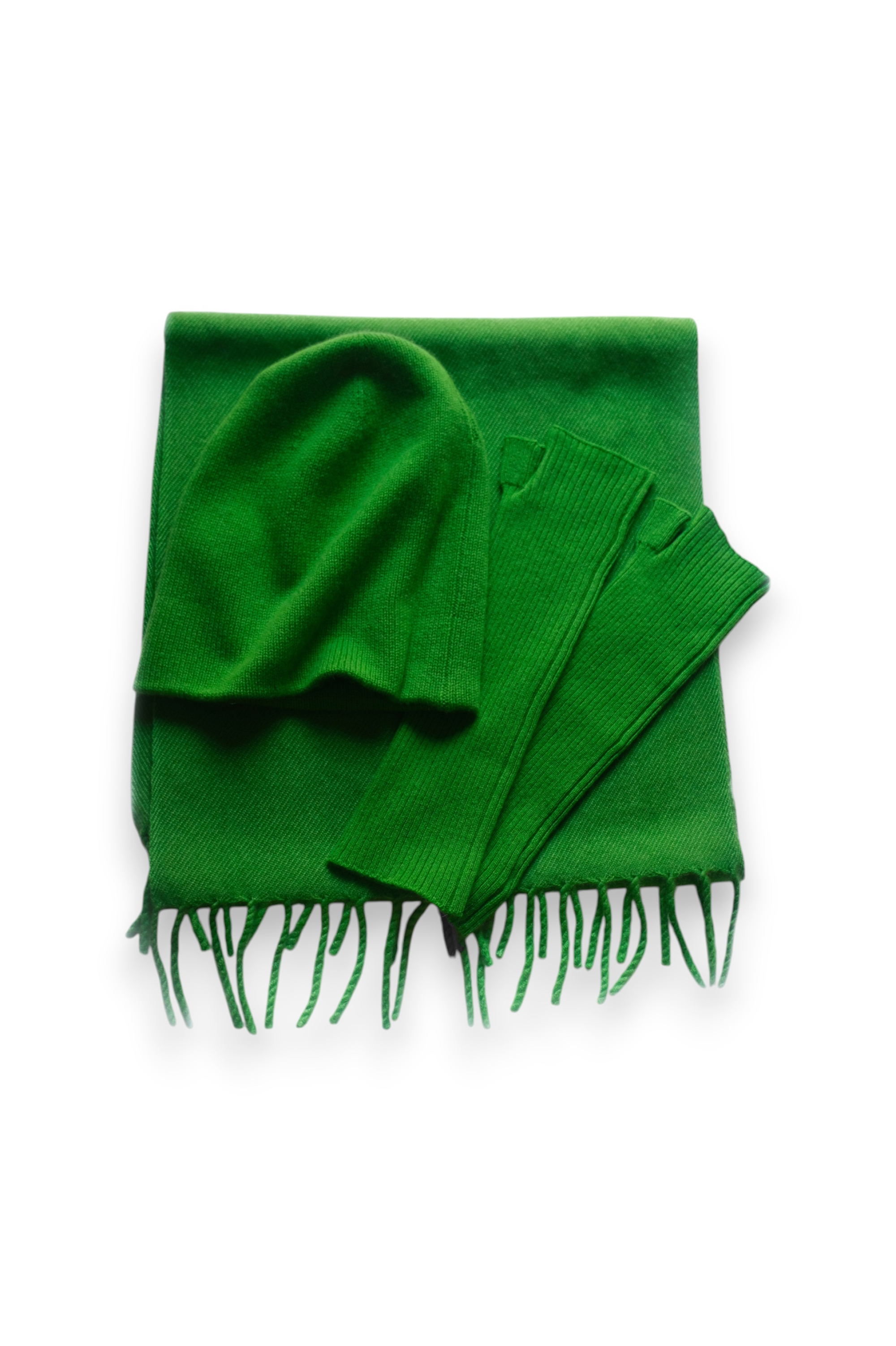 Assortment of 100% cashmere accessories comprising the REVE scarf (6-ply), RAIN mittens (2-ply ribbed) and DONNA hat (4-ply), the perfect combination to combat the winter cold. Ideal as a gift or a treat for yourself! Please note that there may be slight variations in color between the different pieces in a set, due in particular to the way they are manufactured (knitted/woven).