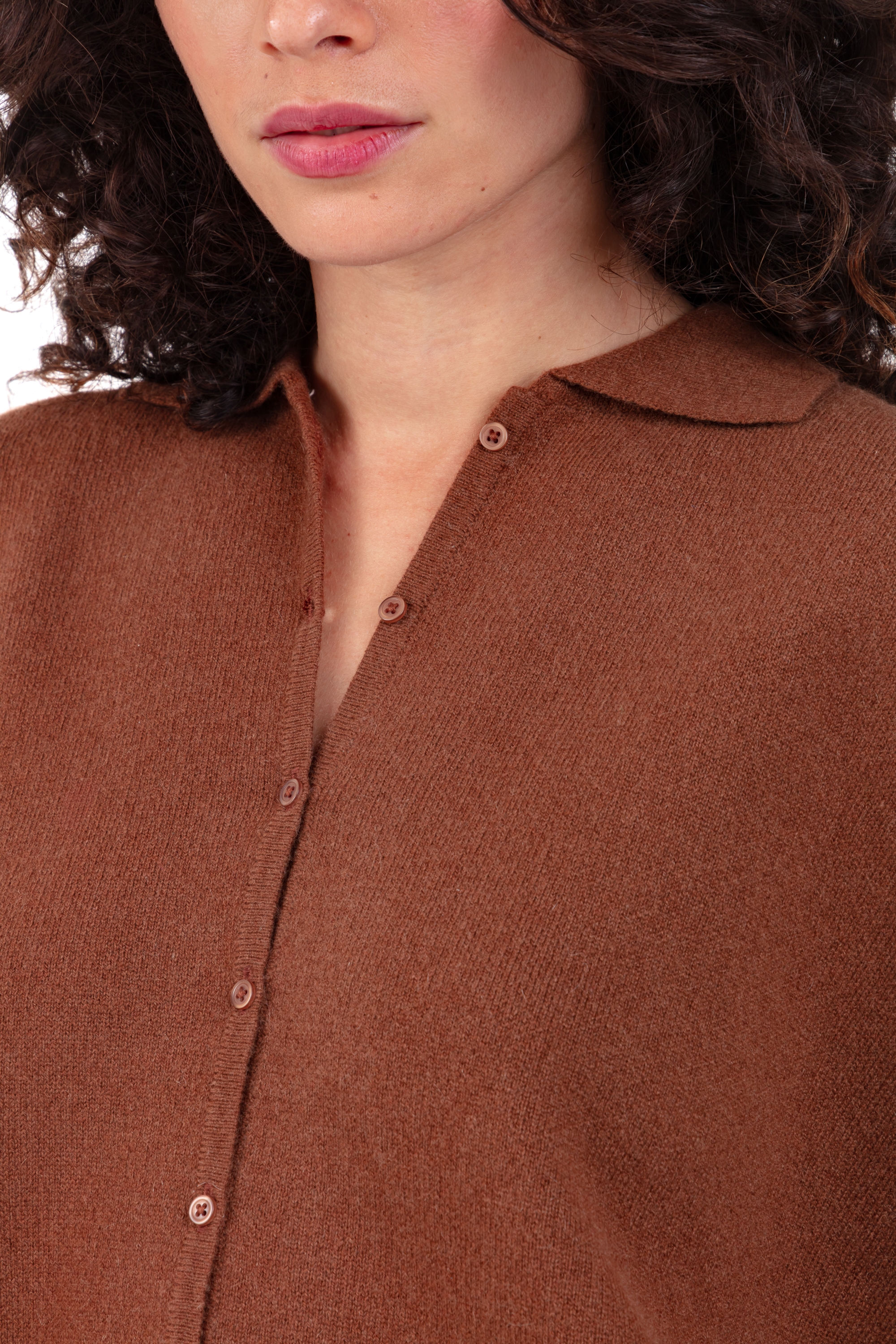 • This cashmere shirt-style jumper is worn as a hybrid piece between jumper and shirt. Ideal with straight trousers or a midi skirt, it adds structure and elegance to your looks.