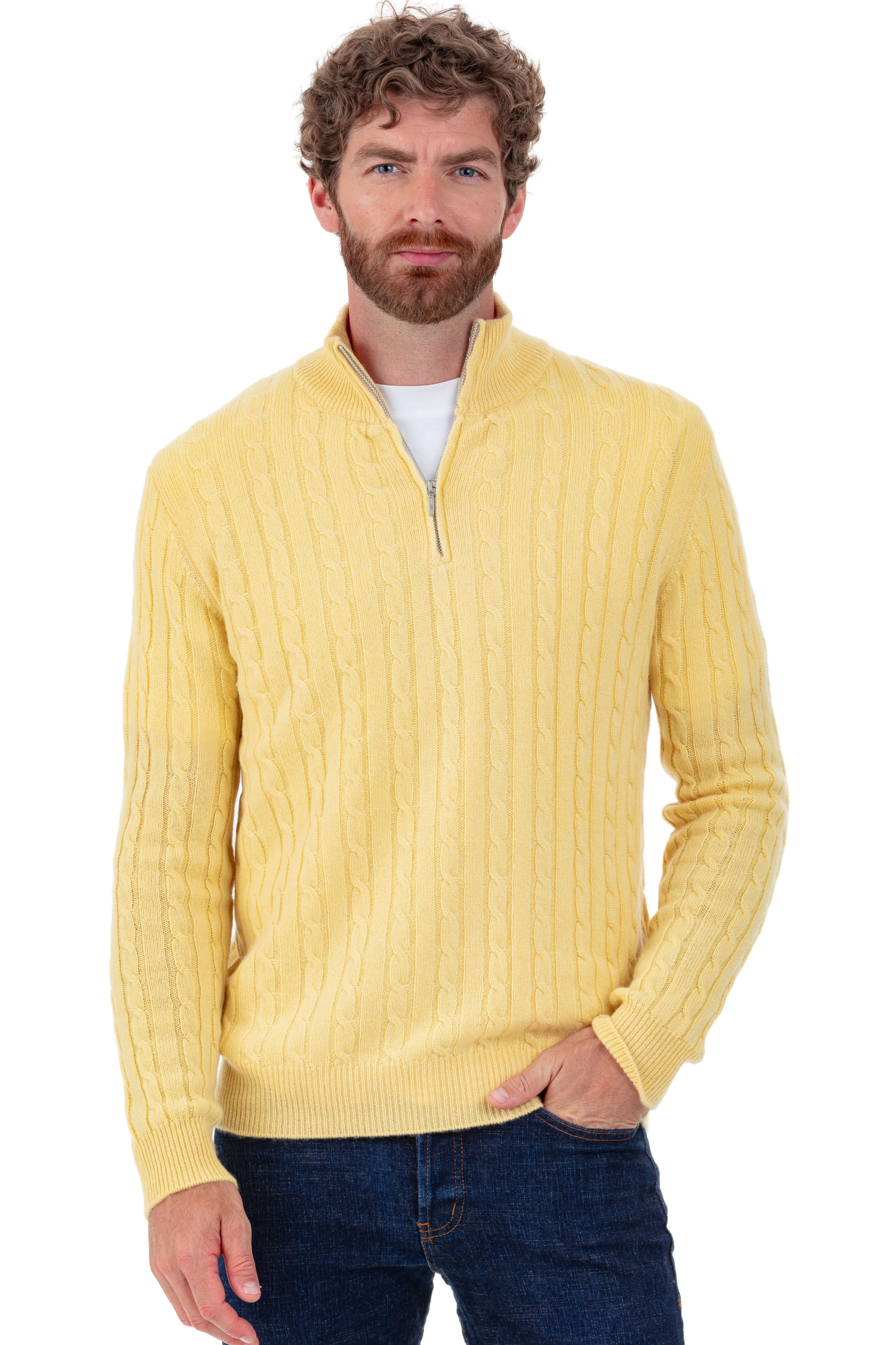 Twisted trucker jumper. A man’s wardrobe classic enhanced by a cable knit in 4-ply cashmere.