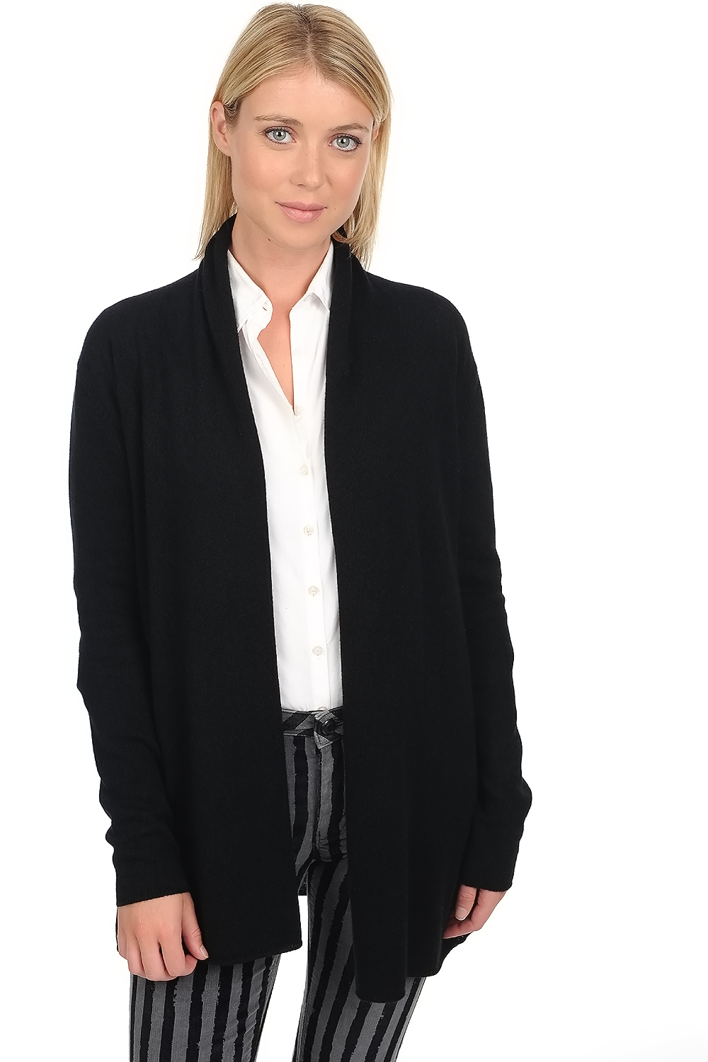 Long fluid and feminine cardigan in a wrapping enveloping look. Made in Premium 2ply Cashmere, a must-have in your ward-robe.
