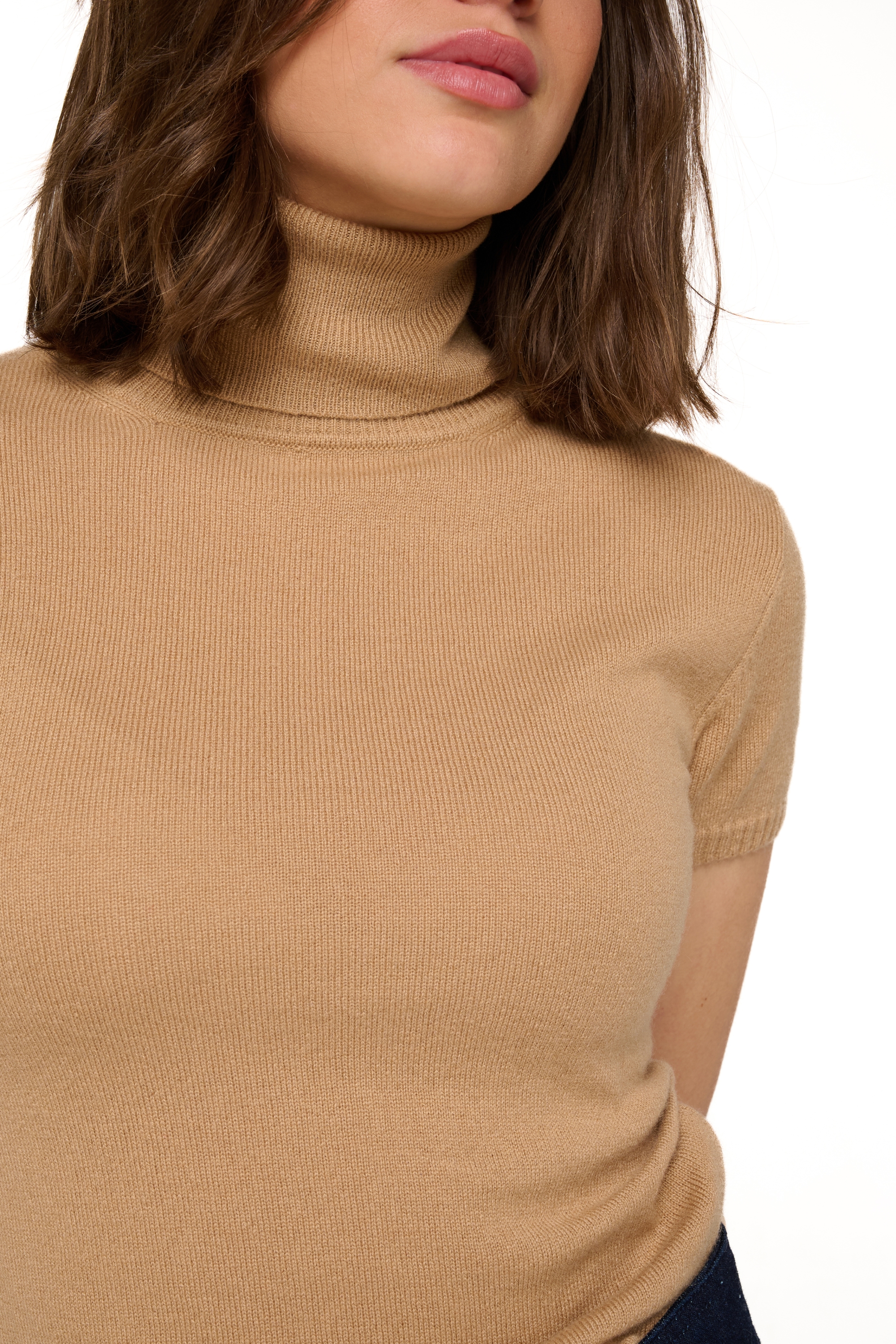 Roll neck jumper, with fashioned cap sleeves, rib finish 1 cm deep cuff.