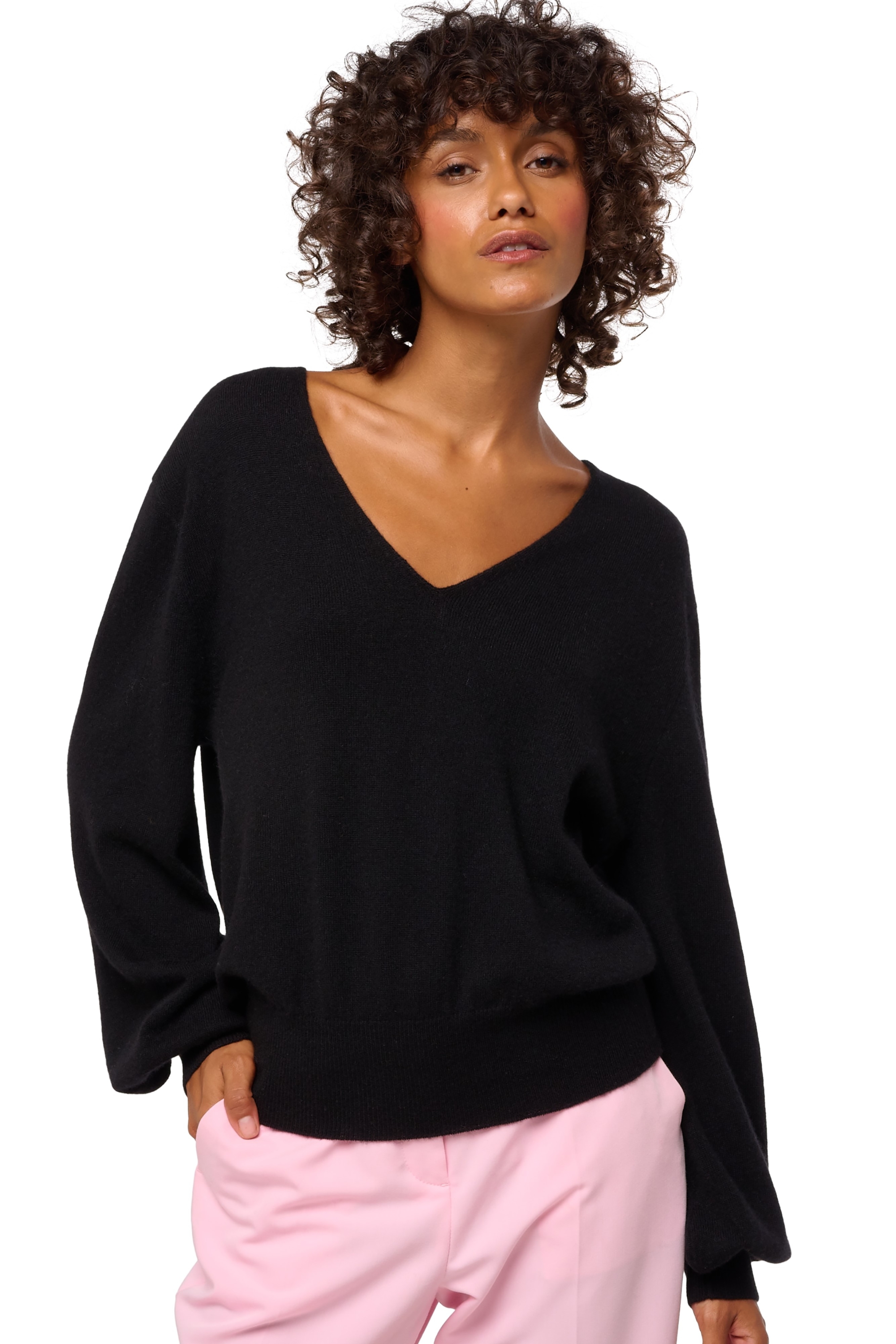 Discover our new DEAUVILLE sweater, a striking piece that's so easy to wear. V-neck sweater with balloon sleeves– where elegance meets simplicity! Its balloon sleeves, neckline, and back detailing makes it the ideal piece to assert your style in cashmere this winter.