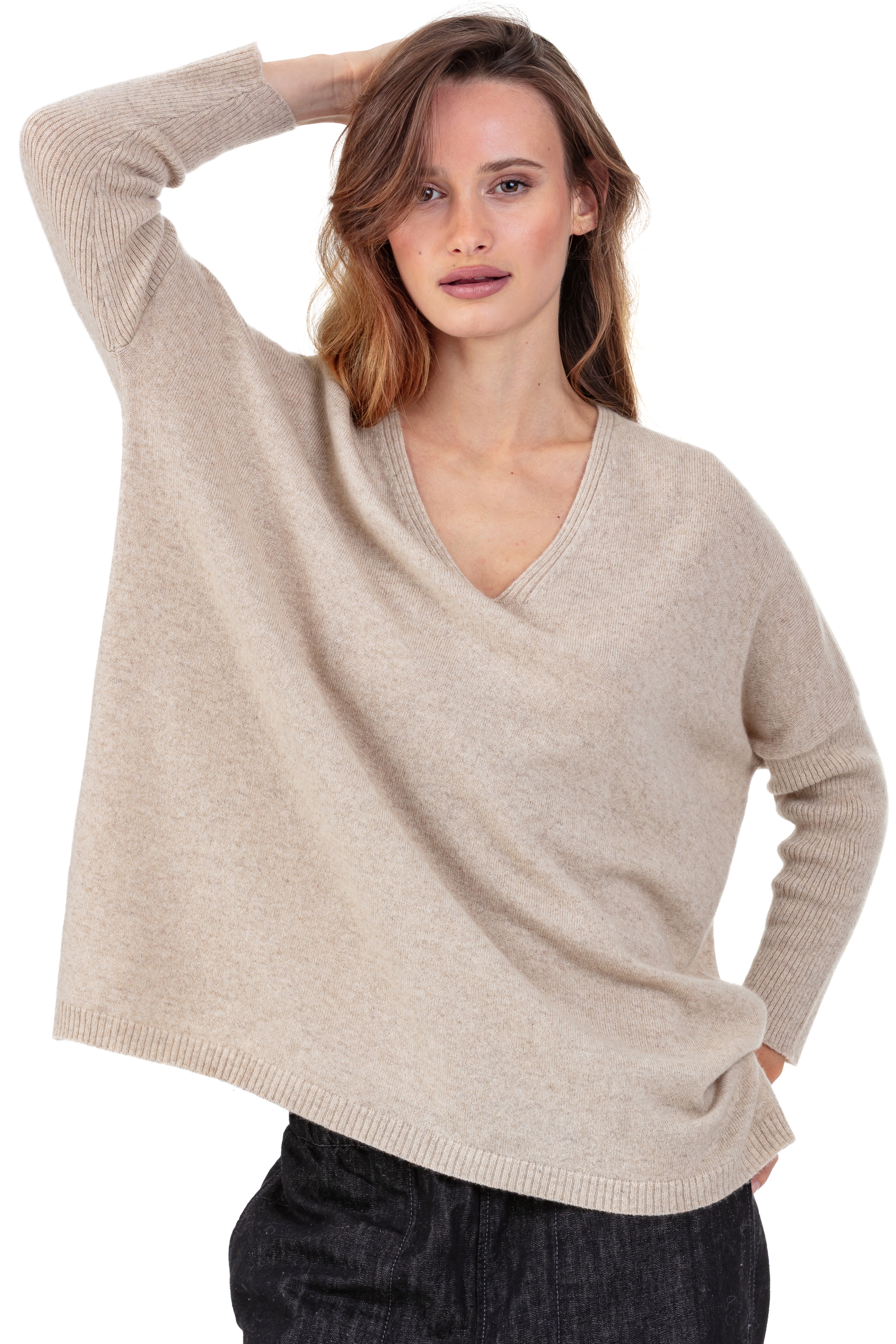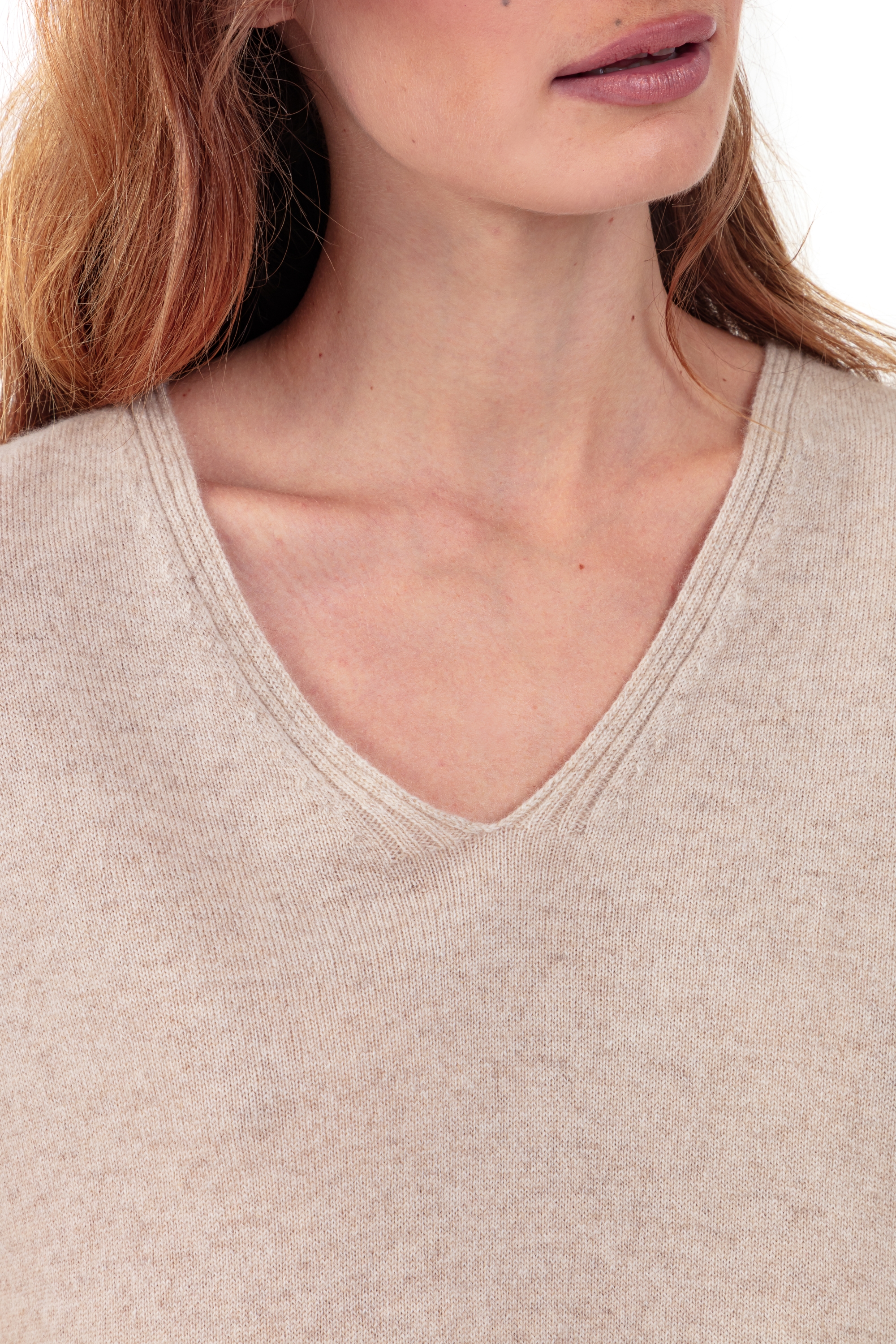 • This oversized V-neck cashmere jumper is ideally paired with slim trousers or a pencil skirt to balance the silhouette. A modern and feminine piece, perfect for all your elegant yet relaxed outfits.