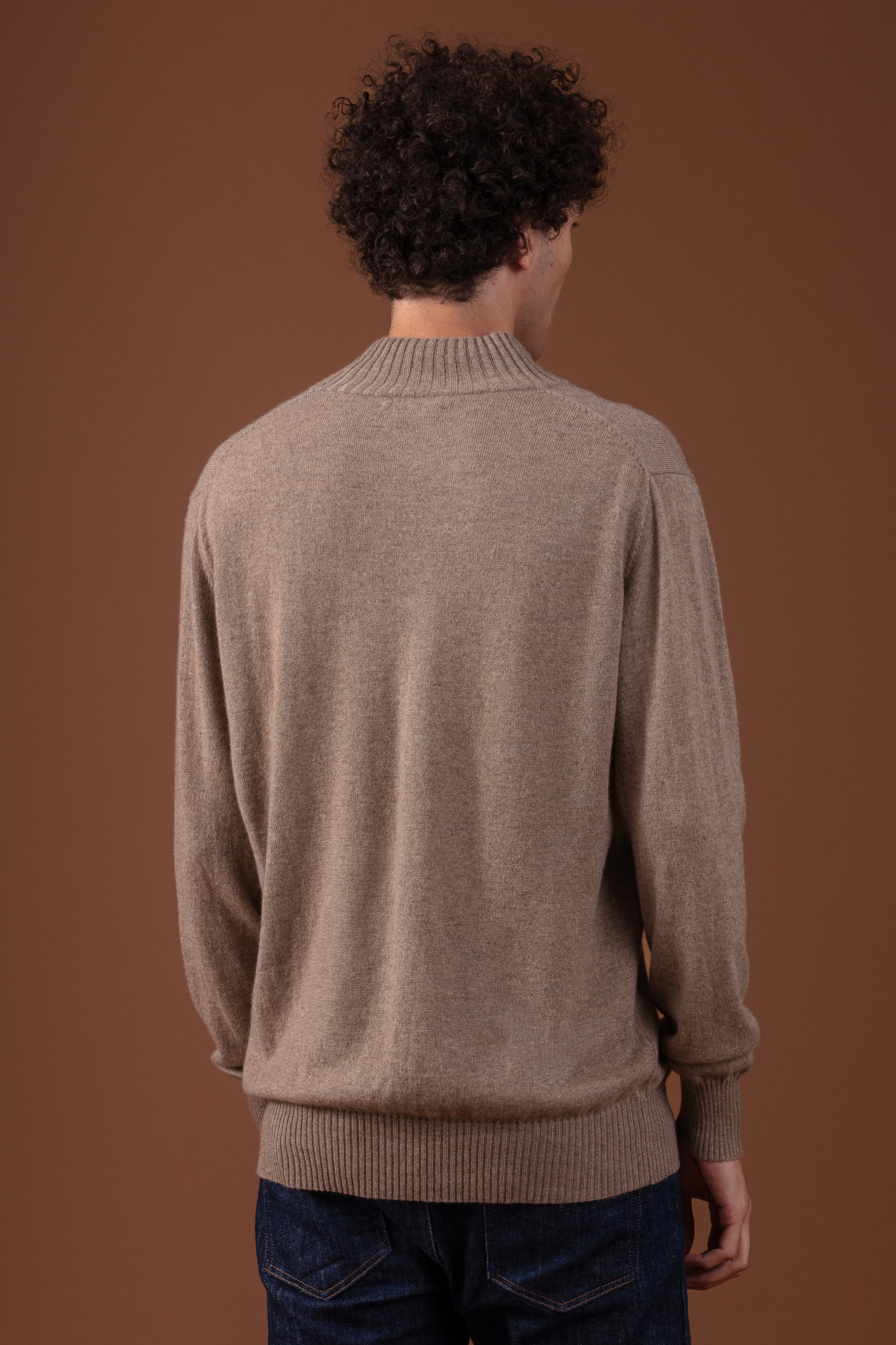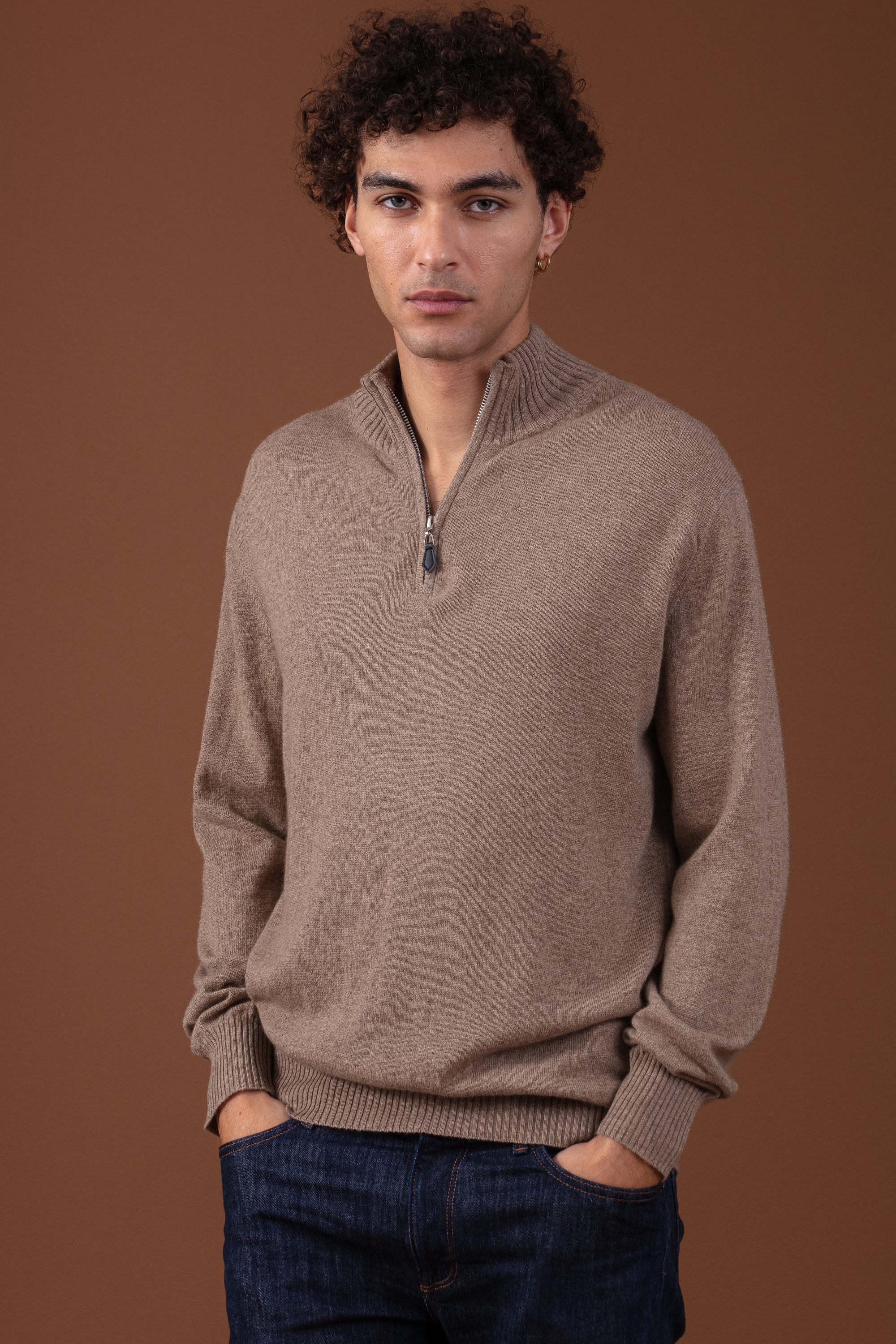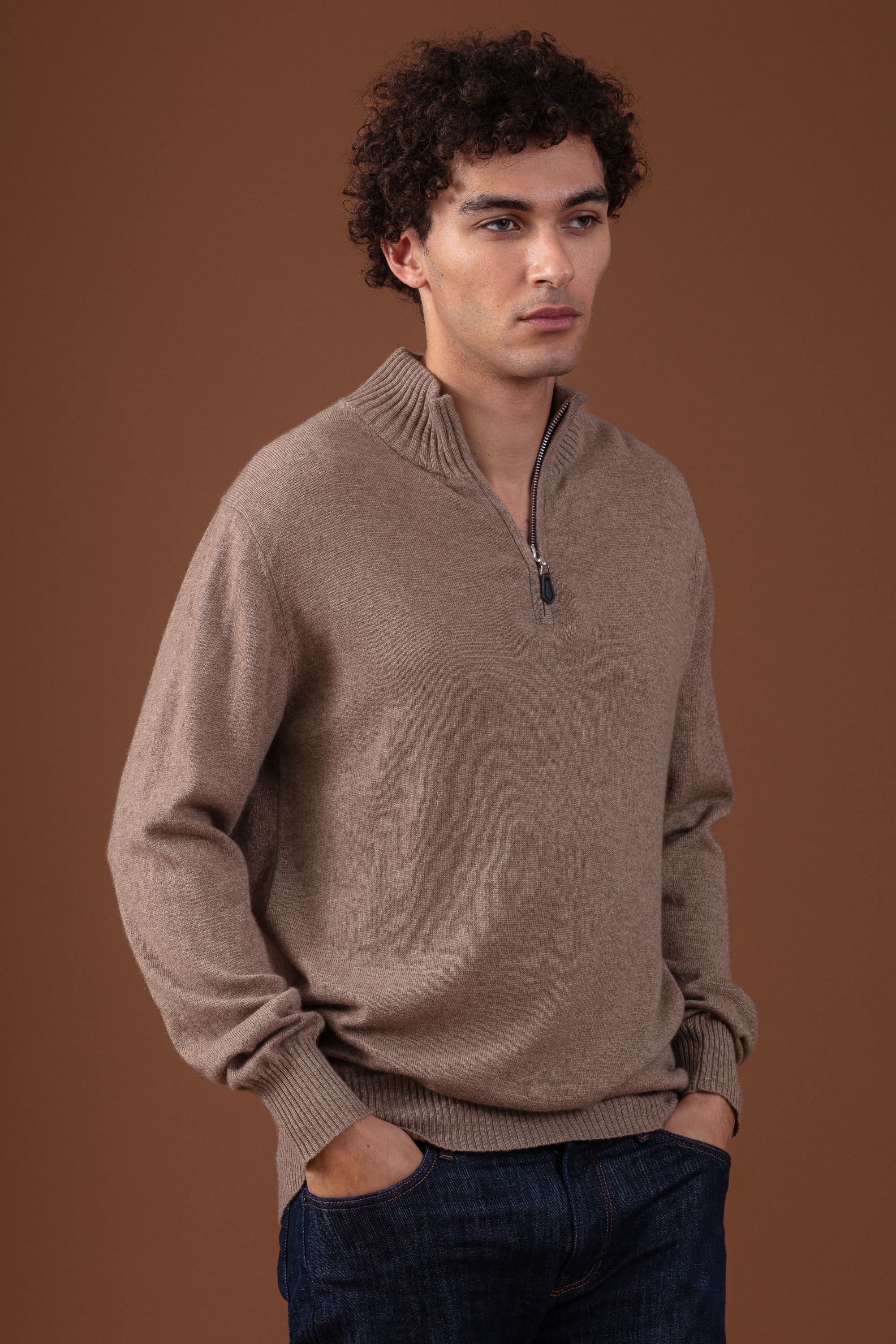 Jumper with zipped high neck and 2x2 ribs in 6cm on cuffs & bottom.