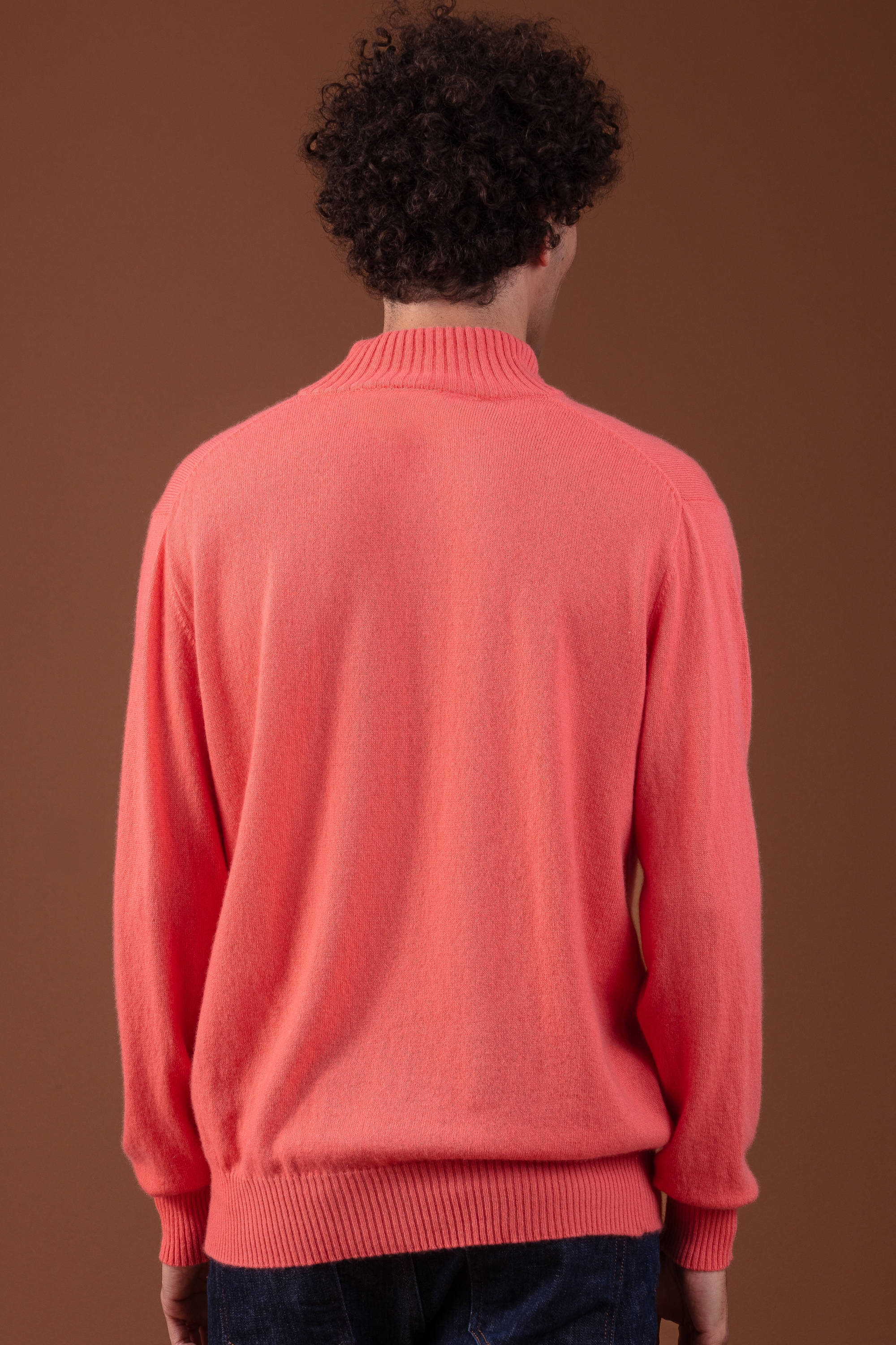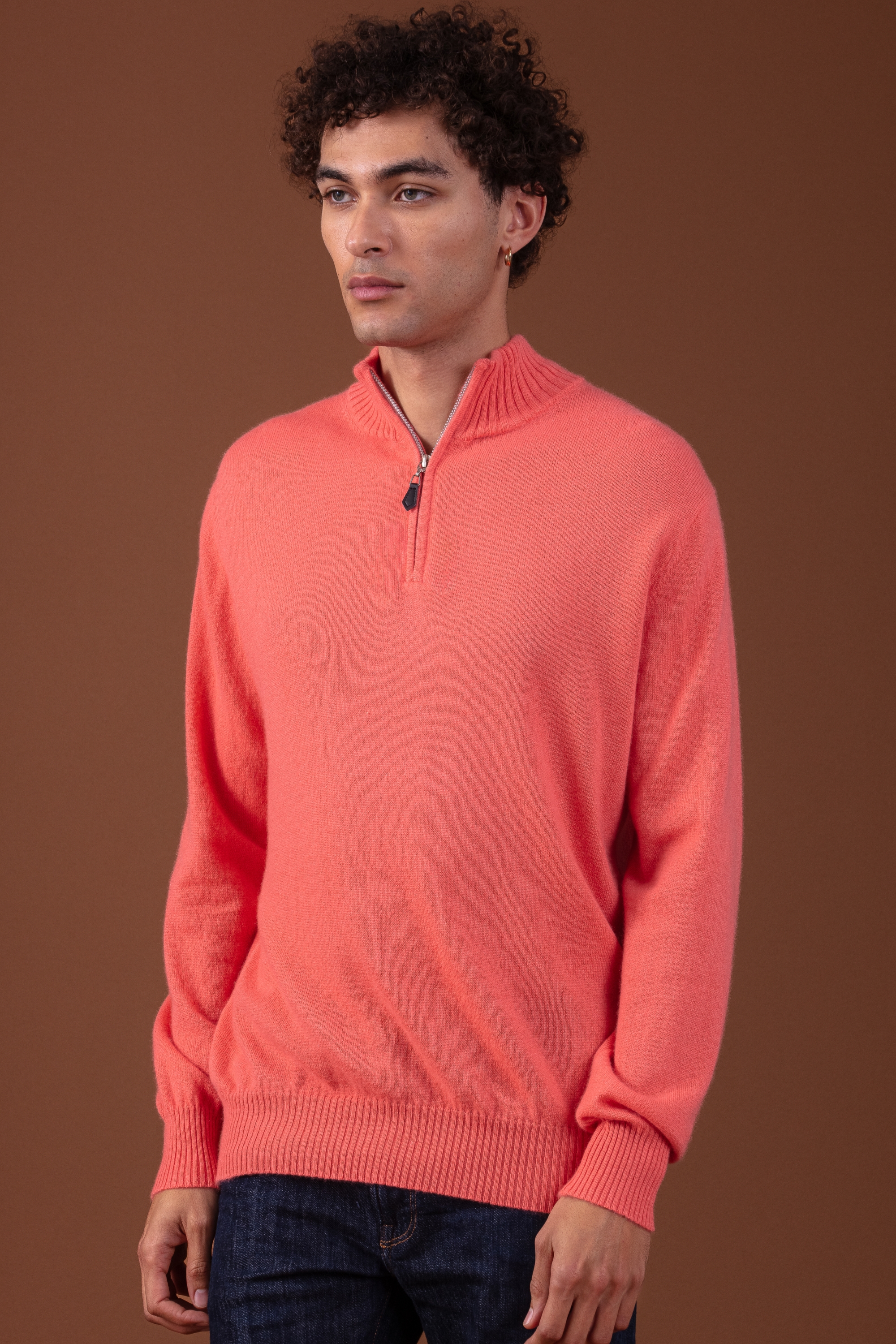 Jumper with zipped high neck and 2x2 ribs in 6cm on cuffs & bottom.