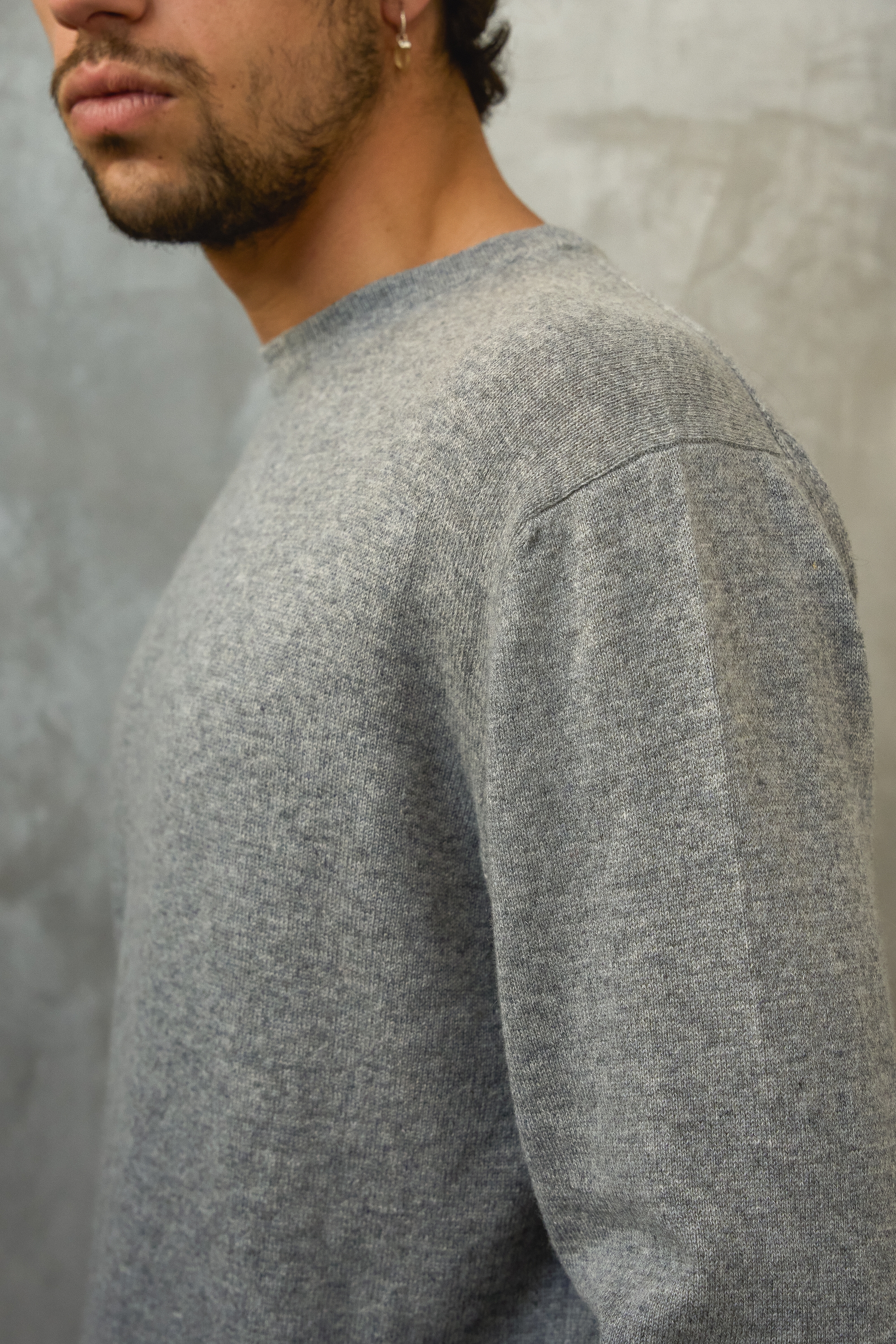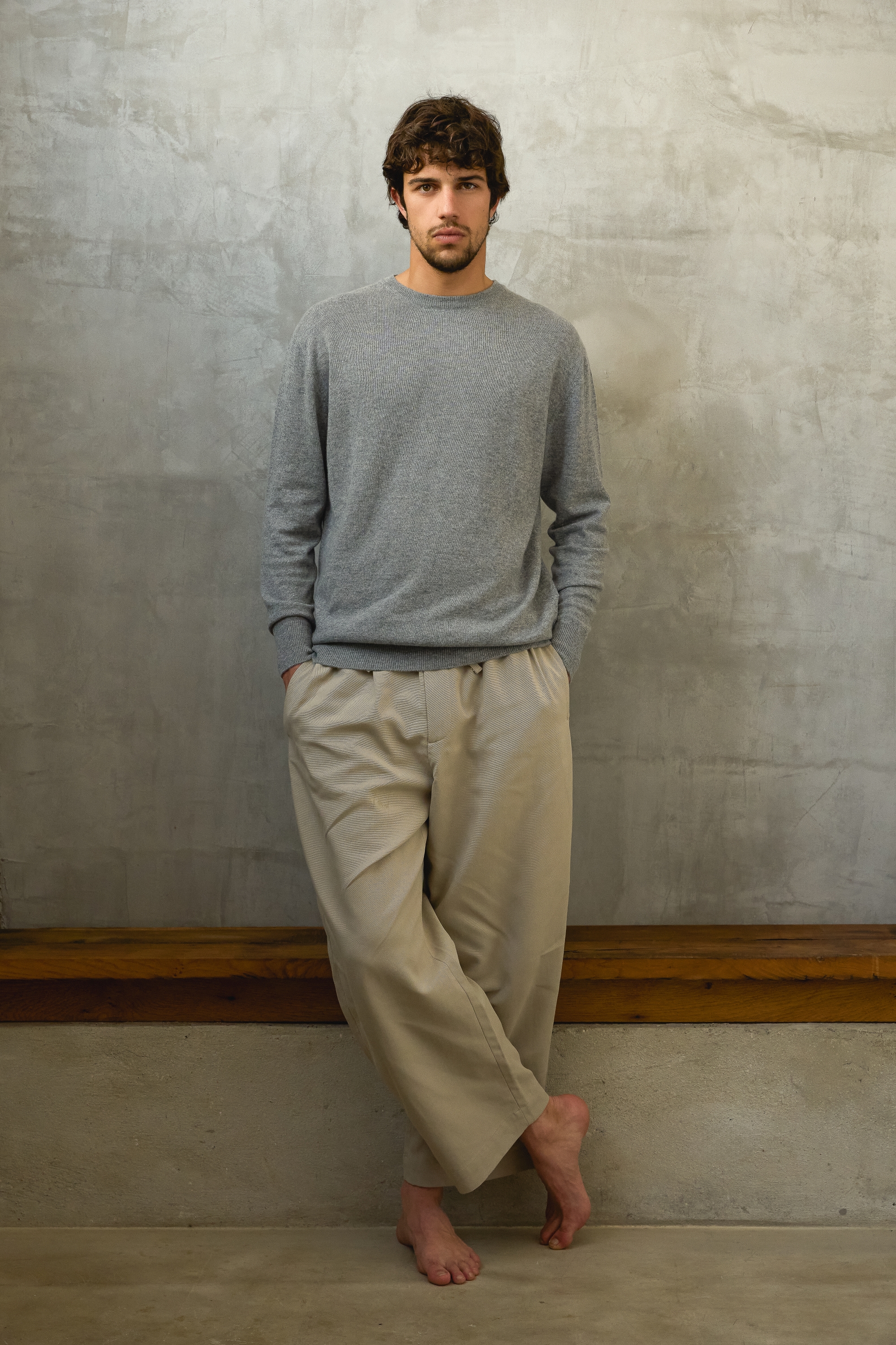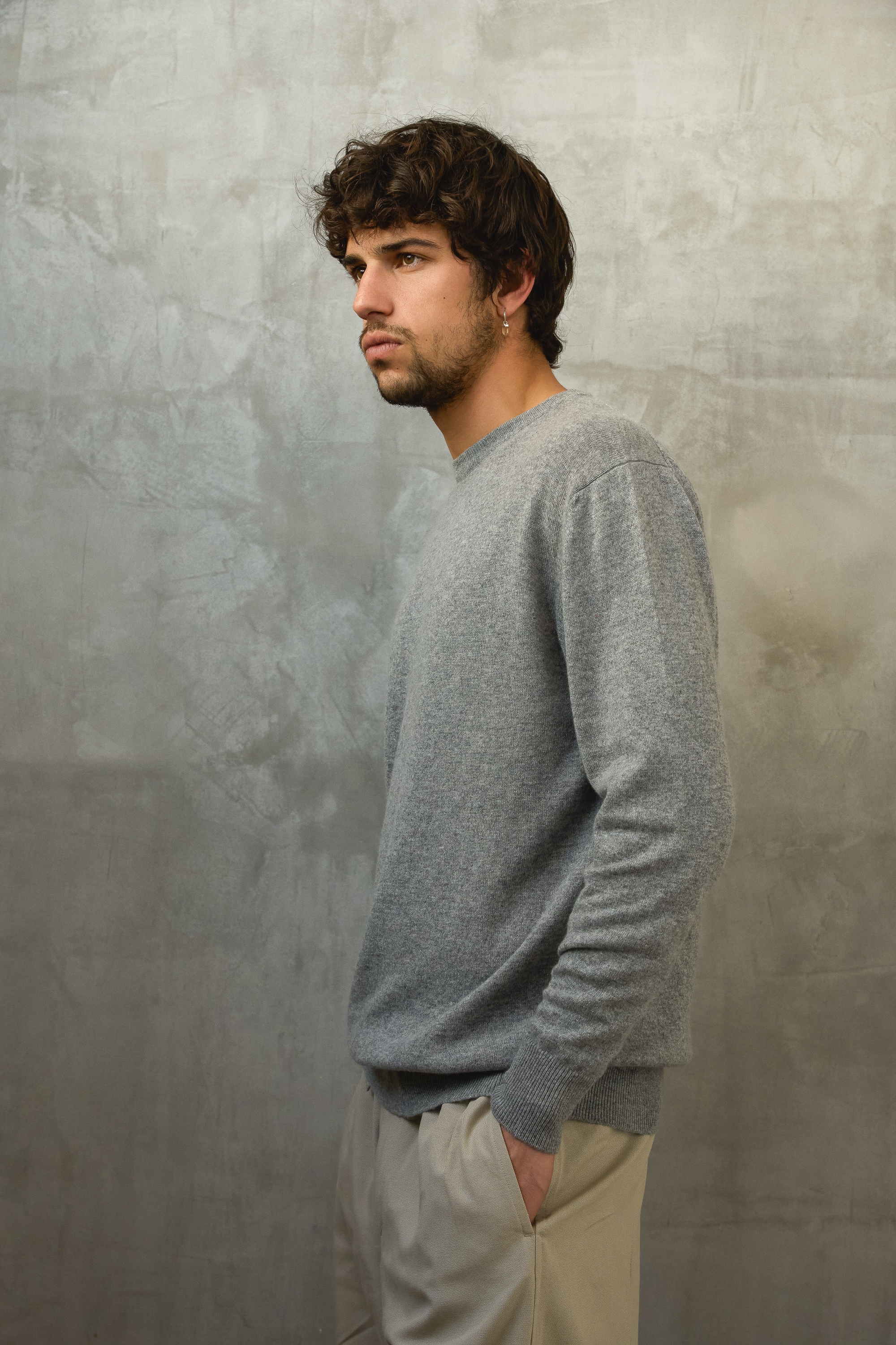 Classical round neck collar pull over – A fine knit pullover and incredibly soft. A perfect edging of 7 cm long on cuffs and hem gives a very elegant figure when it is worn with a suit or jacket.