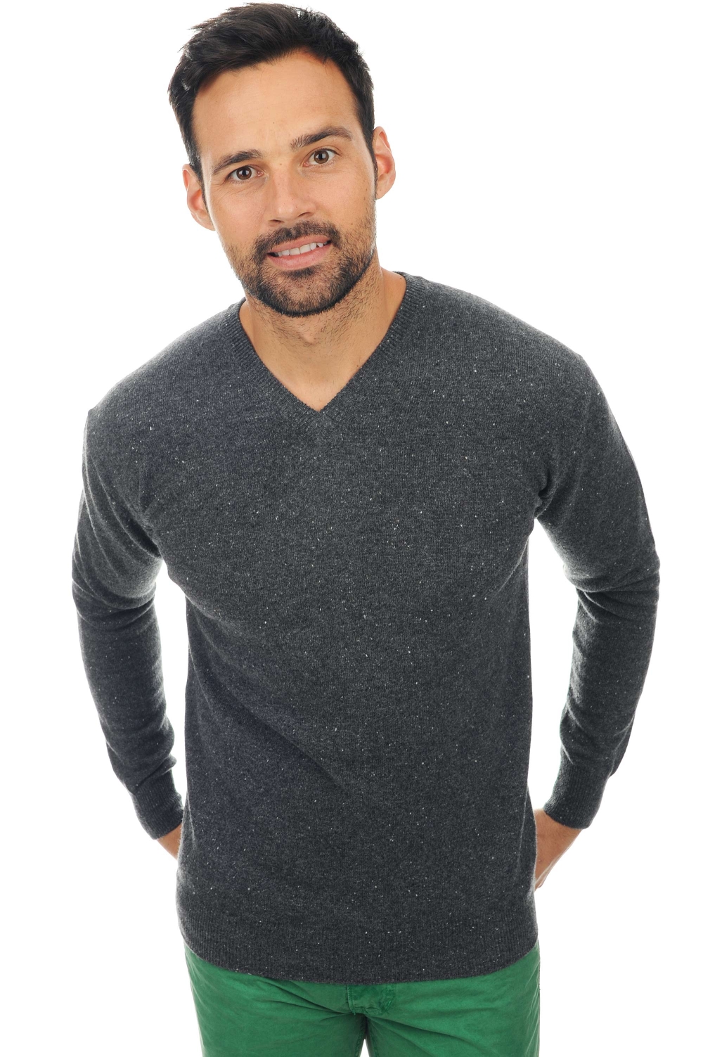 Trendy V-neck sweater with very fitted look.