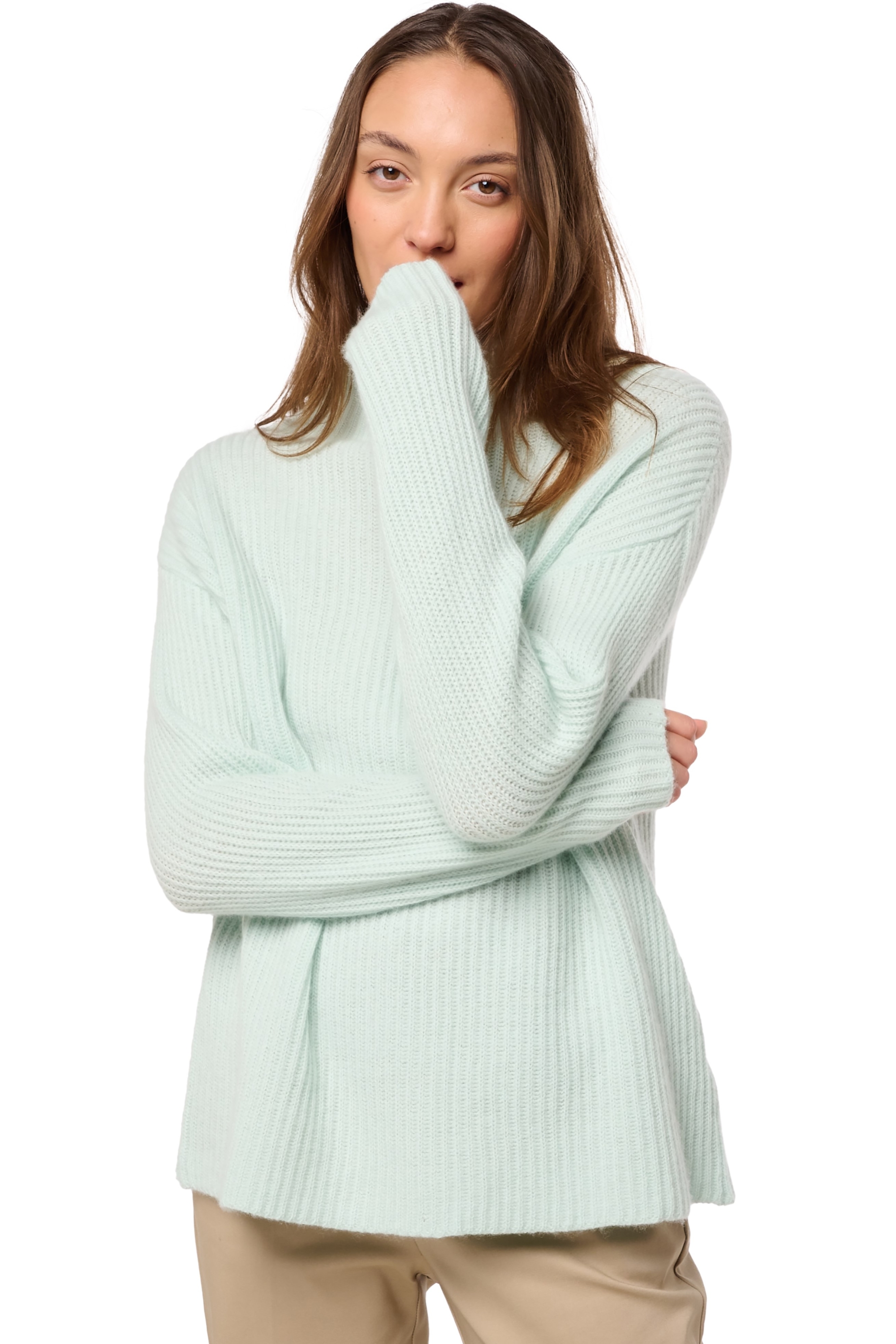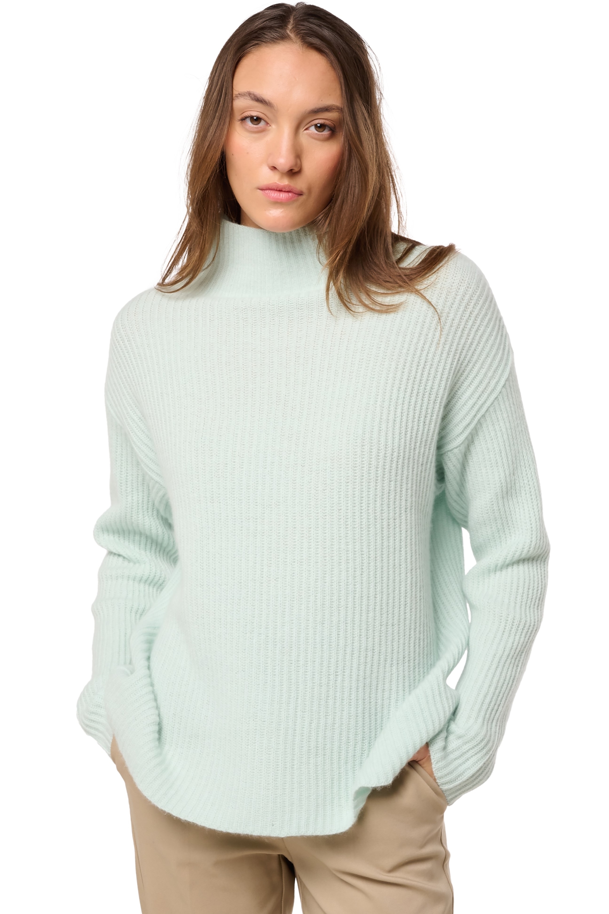 High-neck sweater, fully ribbed. We love its straight pr0file minimalist, and sophisticated look. Easy to wear, this model is a winter essential that will accompany you throughout the season.
