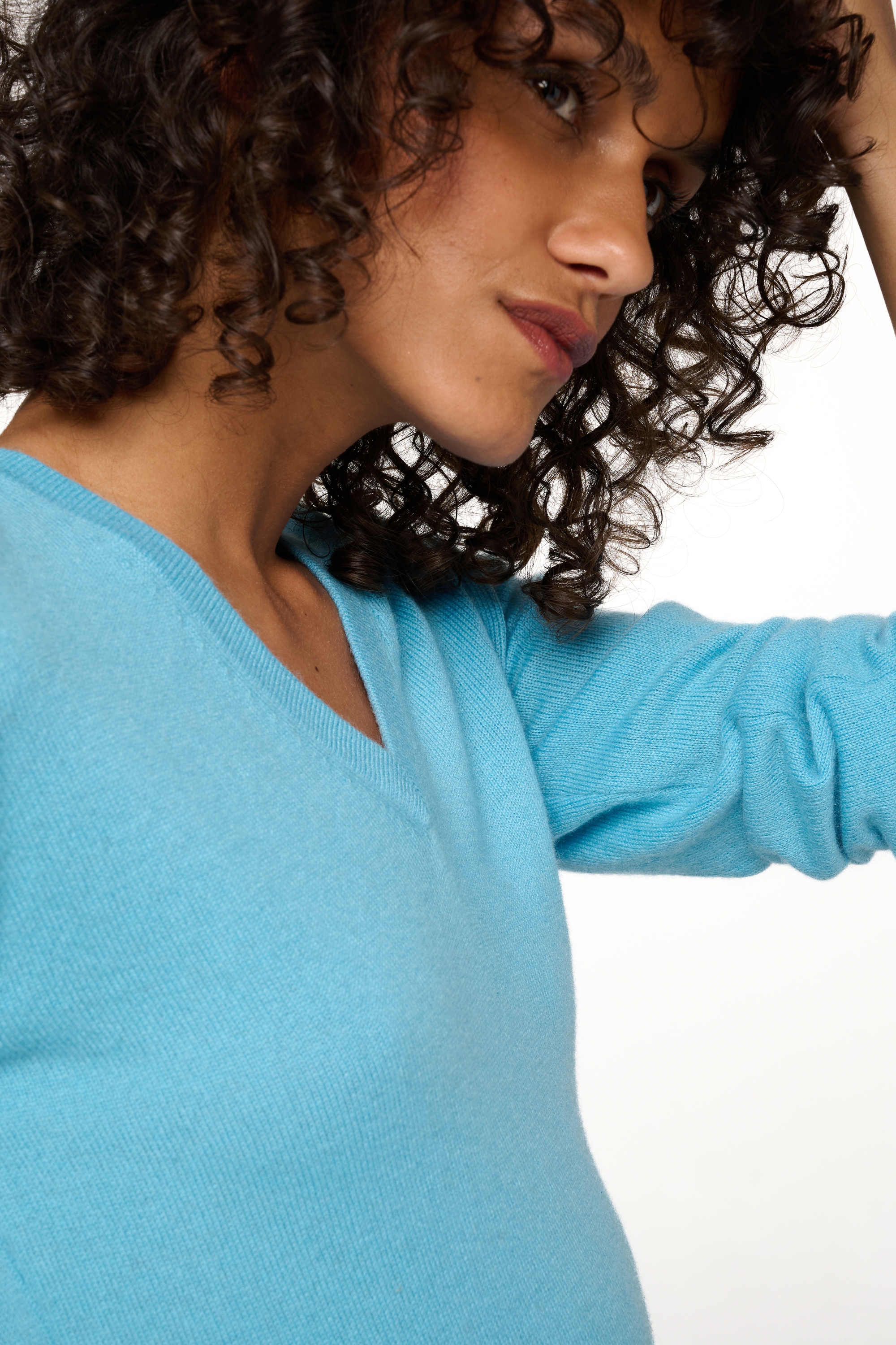 V neck collar sweater. Fine knitted edging.