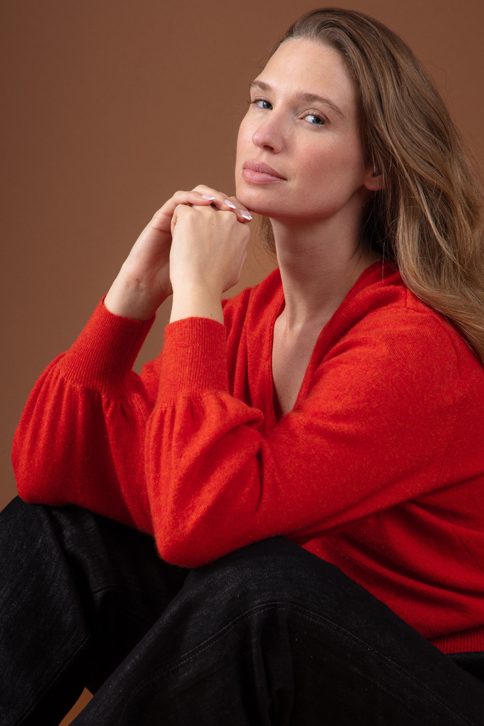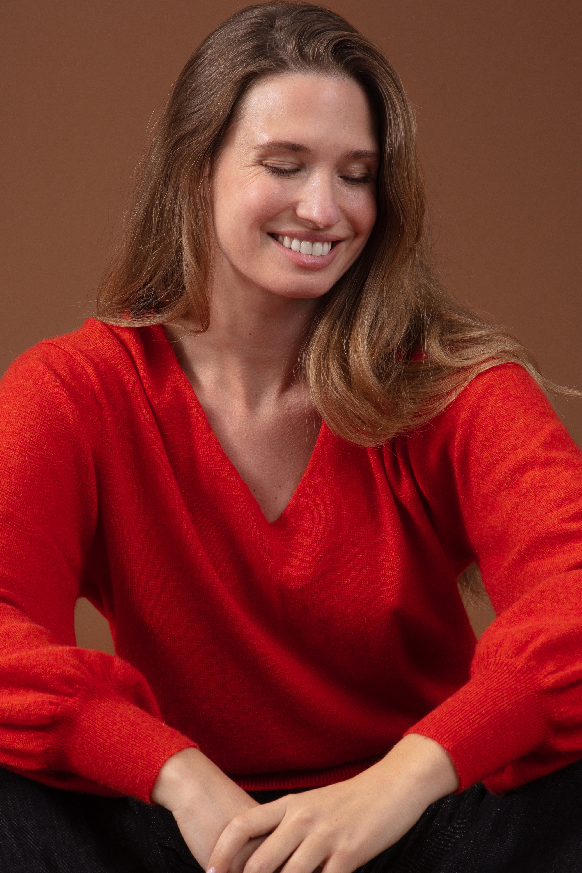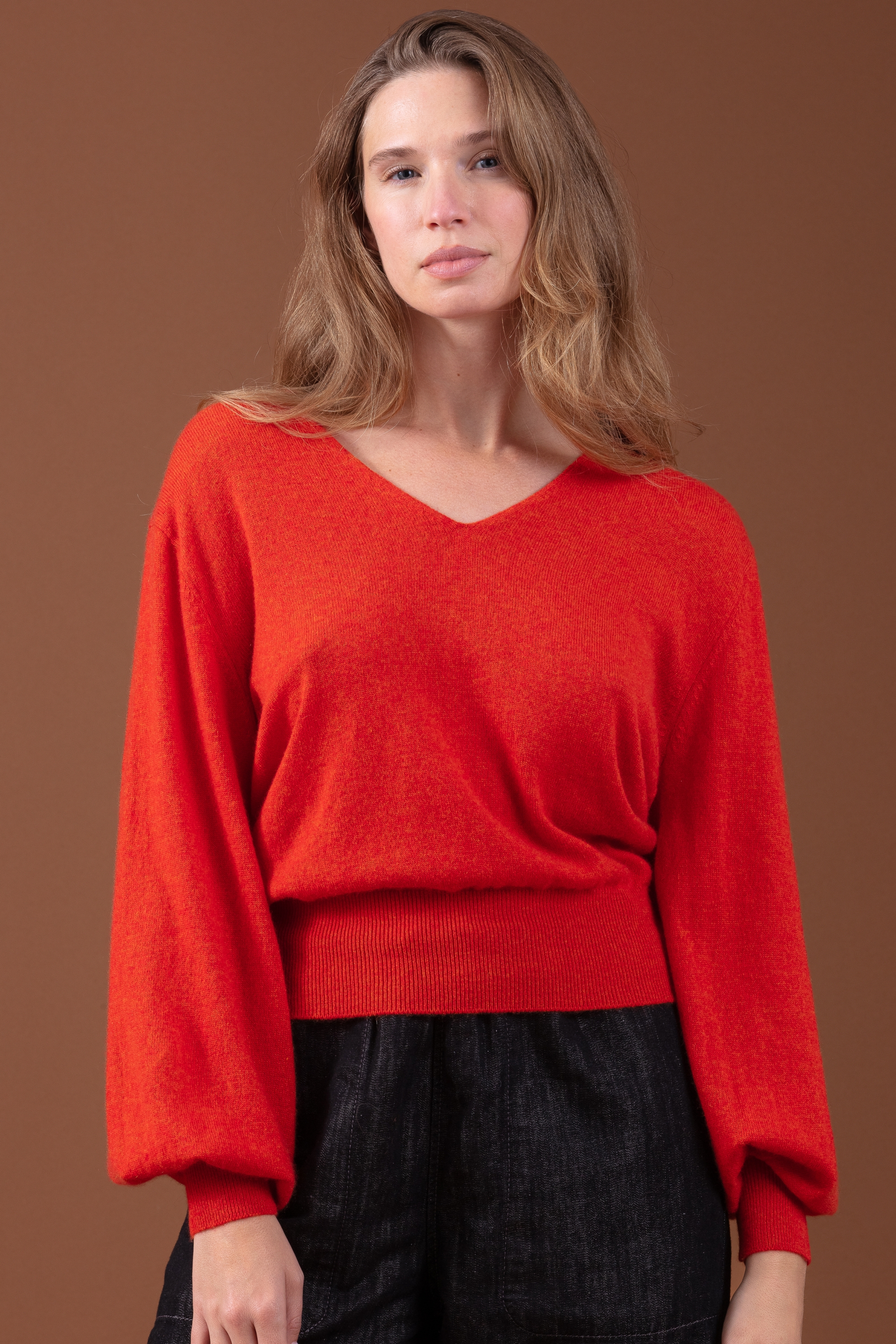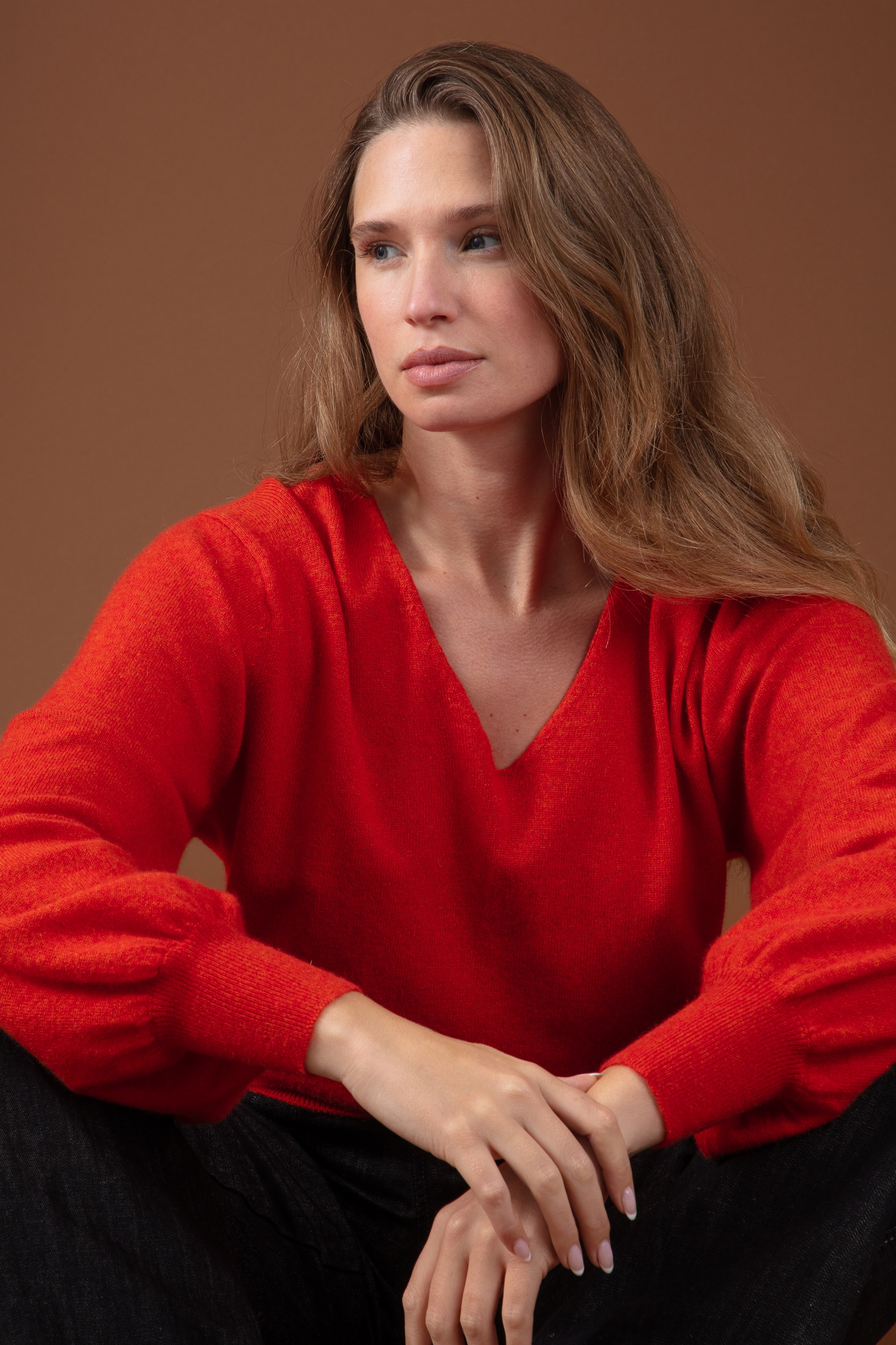 Discover our new DEAUVILLE sweater, a striking piece that's so easy to wear. V-neck sweater with balloon sleeves– where elegance meets simplicity! Its balloon sleeves, neckline, and back detailing makes it the ideal piece to assert your style in cashmere this winter.